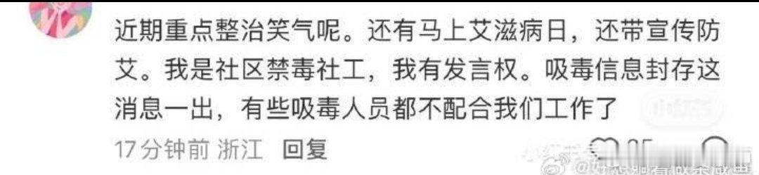 我支持吸毒入刑看到有人说,现在一喊封存,已经给禁毒工作带来阻碍了:“近期重点整治笑气呢。还有马上艾滋病日,还带宣传防艾。我是社区禁毒社工,我有发言权。吸毒信息封存这消息一出,有些吸毒人员都不配合我们工作了。”建议把这些砖家派过去,体会一下咱们基层禁毒社工的困难