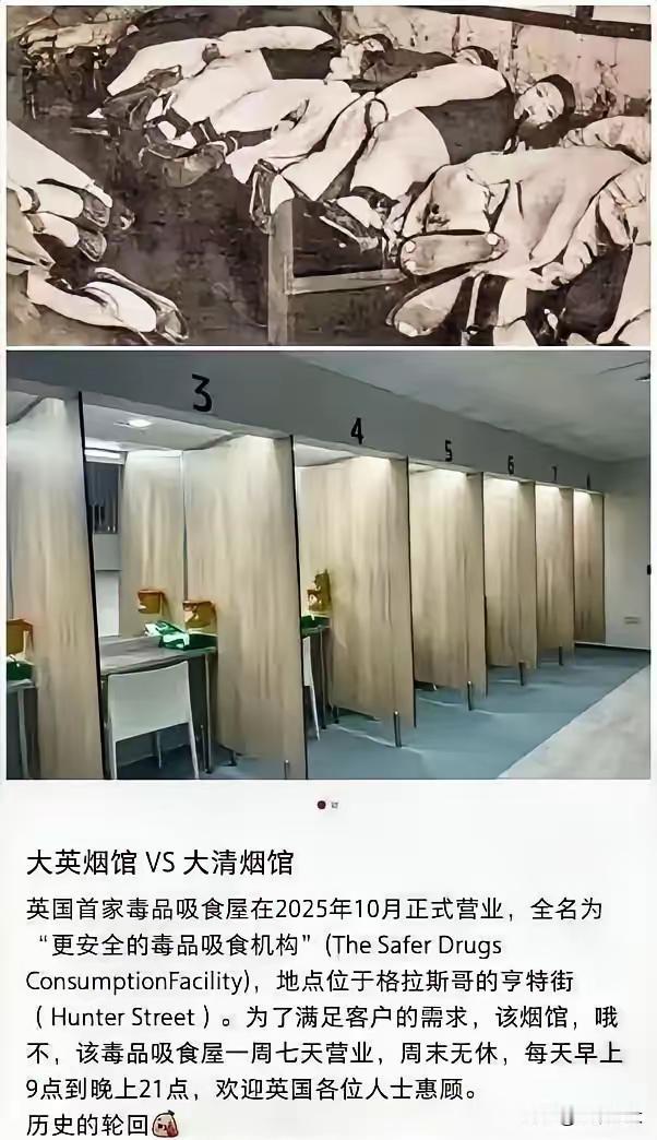 民族英雄林则徐虎门销烟,将英国人出口到我国祸害国人的鸦片付之一炬,烧出了中国人的威风。英国人恼羞成怒,悍然发动鸦片战争,使我国遭受了无比大的损失。如今,英国佬在英国开起了烟馆,林则徐在天堂露出了微笑,世道好轮回,苍天饶过谁?祸祸罢别人,自己祸祸自己吧,报应来了![狗头]