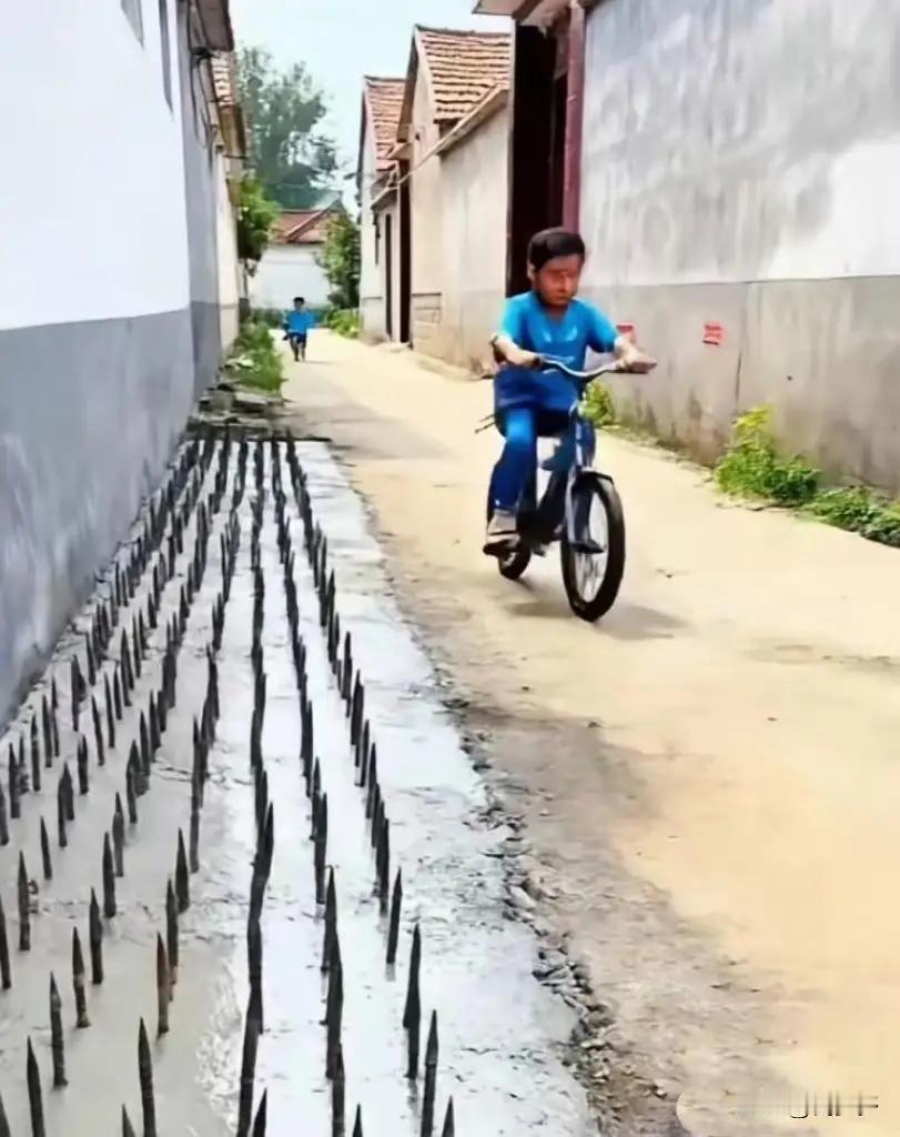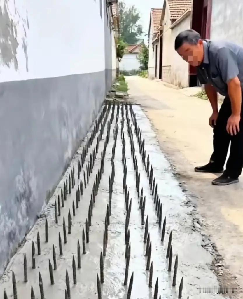 我以为种的是菜,放大一看全是尖铁,还是在马路上,太危险了!