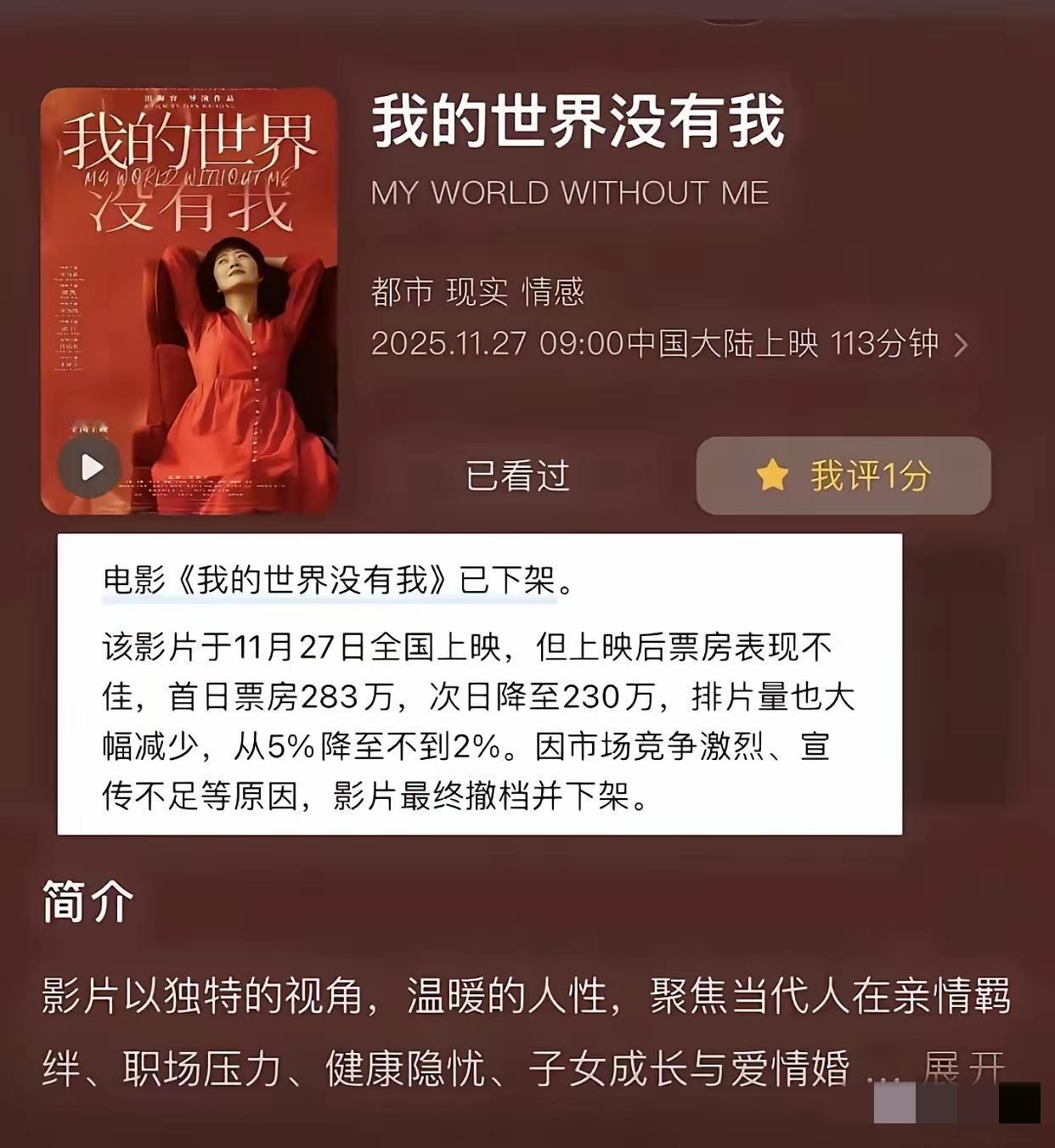 田海蓉努力宣传的电影下架了,宣传的越欢,下架的越快,不过十多天的时间,定局已成,也不用在不顾形象的哭哭啼啼了,也不用口是心非的说我爱你们了…挺好,歇着吧!想想下次拍个什么题材的电影能合观众的口味!