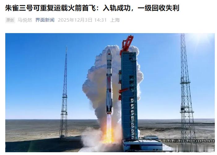 今天(12月3日),朱雀三号遥一运载火箭在东风商业航天创新试验区发射升空,按程序完成了飞行任务,火箭二级进入预定轨道。 但在火箭一级回收过程中发生异常燃烧,未实现在回收场坪的软着陆,回收试验失败。据悉,研制团队将尽快开展本次试验过程的全面复盘与技术归零,全力查明故障原因,持续优化回收方案,在后续任务中继续推进可重复使用验证。热门微博天文航天科技快讯朱雀火箭