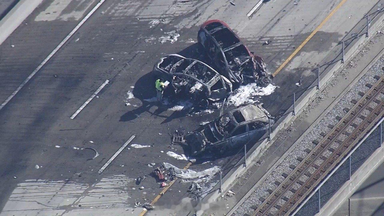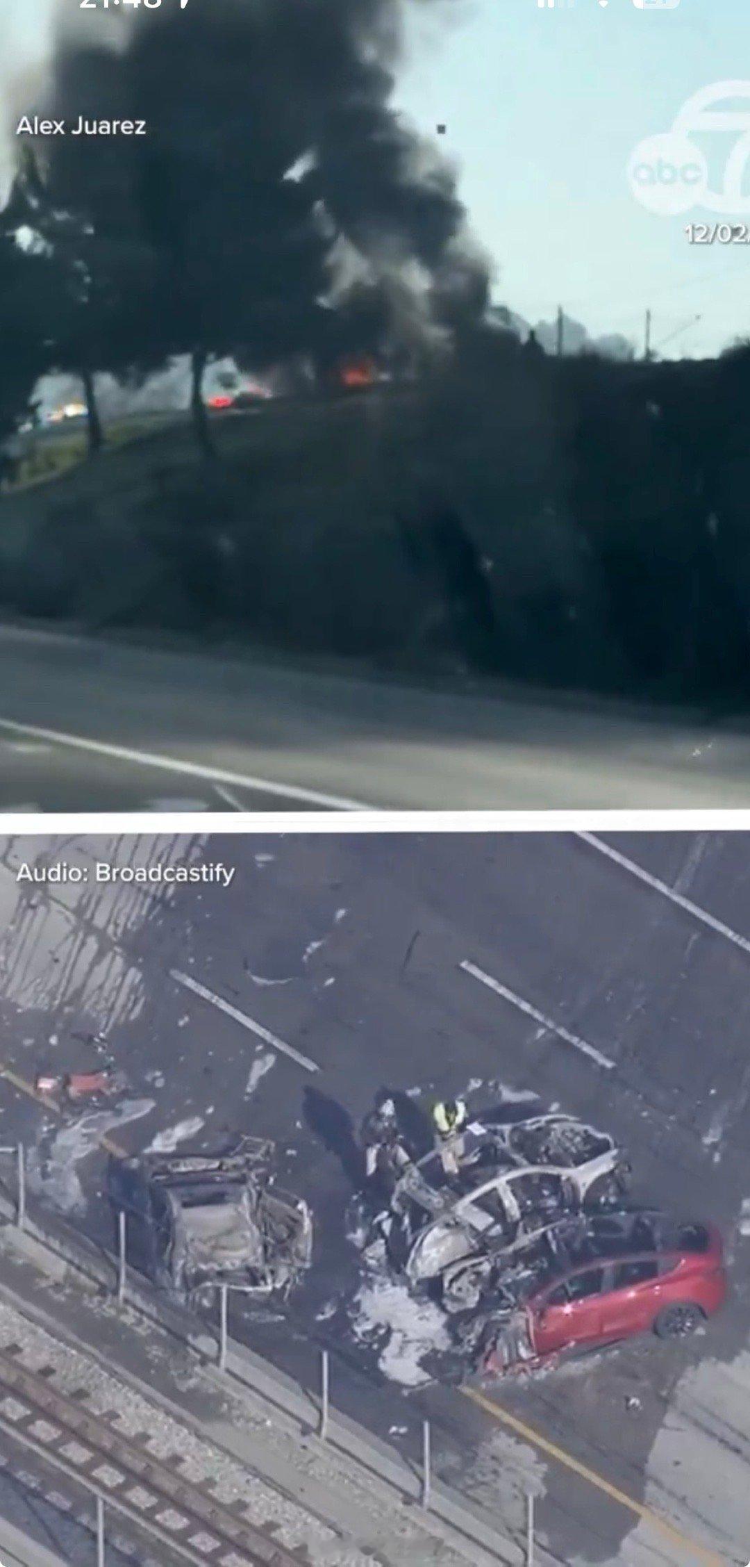 今天本地高速一场惨烈车祸,四车相撞引发大火,其中一辆雷克萨斯和两辆特斯拉均被被烧成空壳,导致两死两伤。现场弥漫着烧焦橡胶的刺鼻气味,高速被迫关闭半天时间。加州公路巡警(CHP)表示:• 死亡的两人是雷克萨斯内的成人及一名儿童,他们未能逃出车外。• 两名特斯拉驾驶员被送往医院,伤势不明。另外一辆丰田塞纳受损最为轻微。得以自行离开现场。初步调查显示,酒驾或毒驾的可能性已被排除。