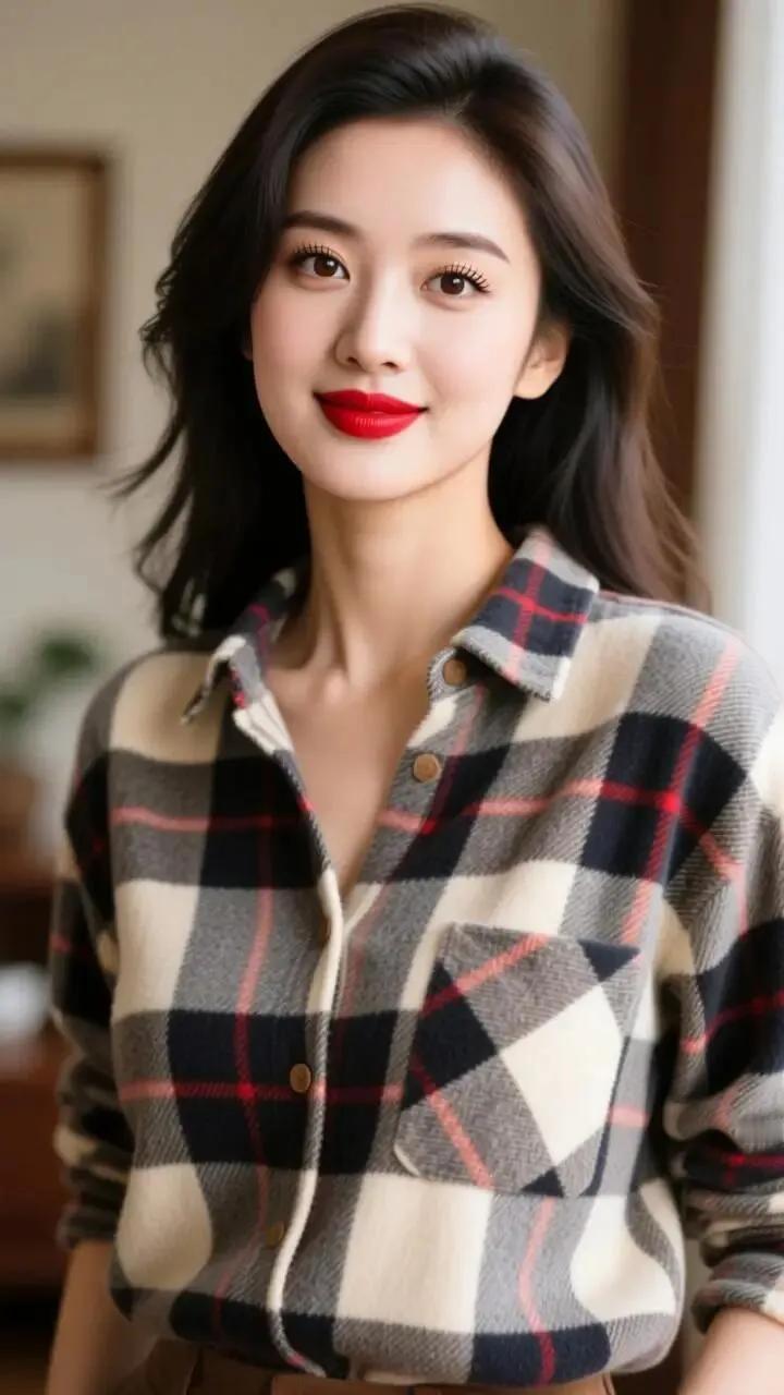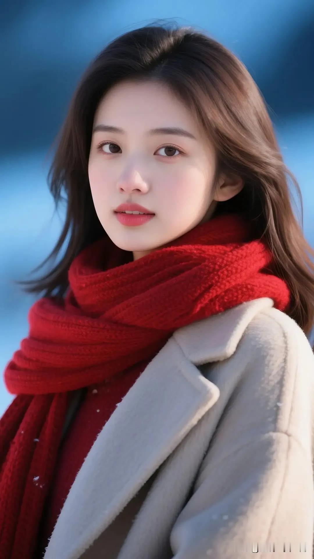 温柔冬日穿搭,暖心微笑,红艳花朵相伴,温暖如春