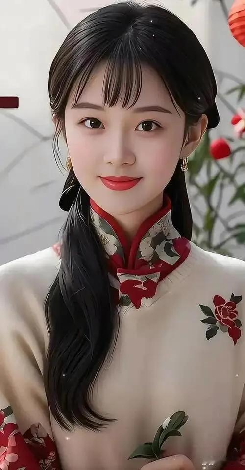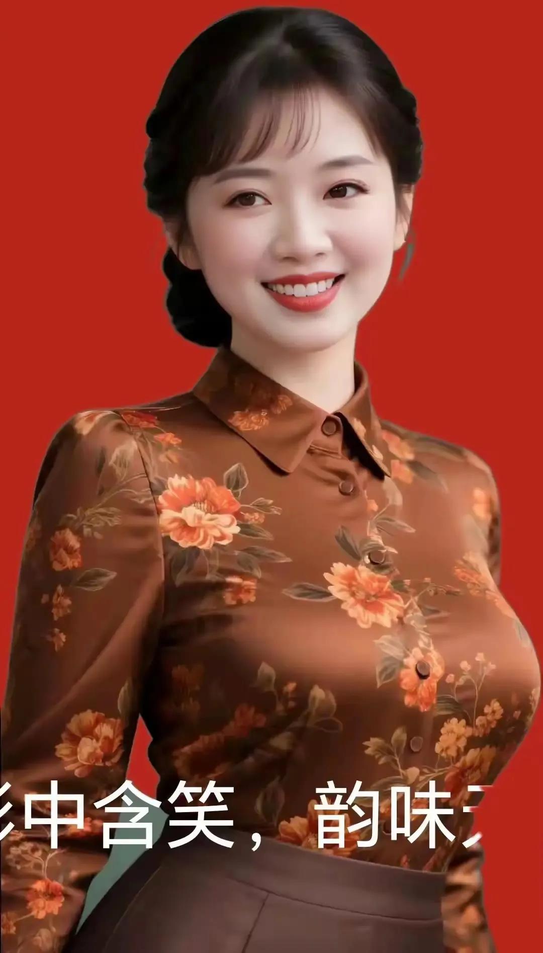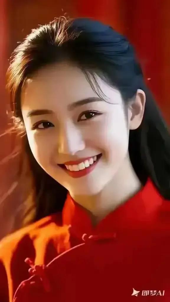 优雅红衣女子,笑靥如花,古典韵味十足。