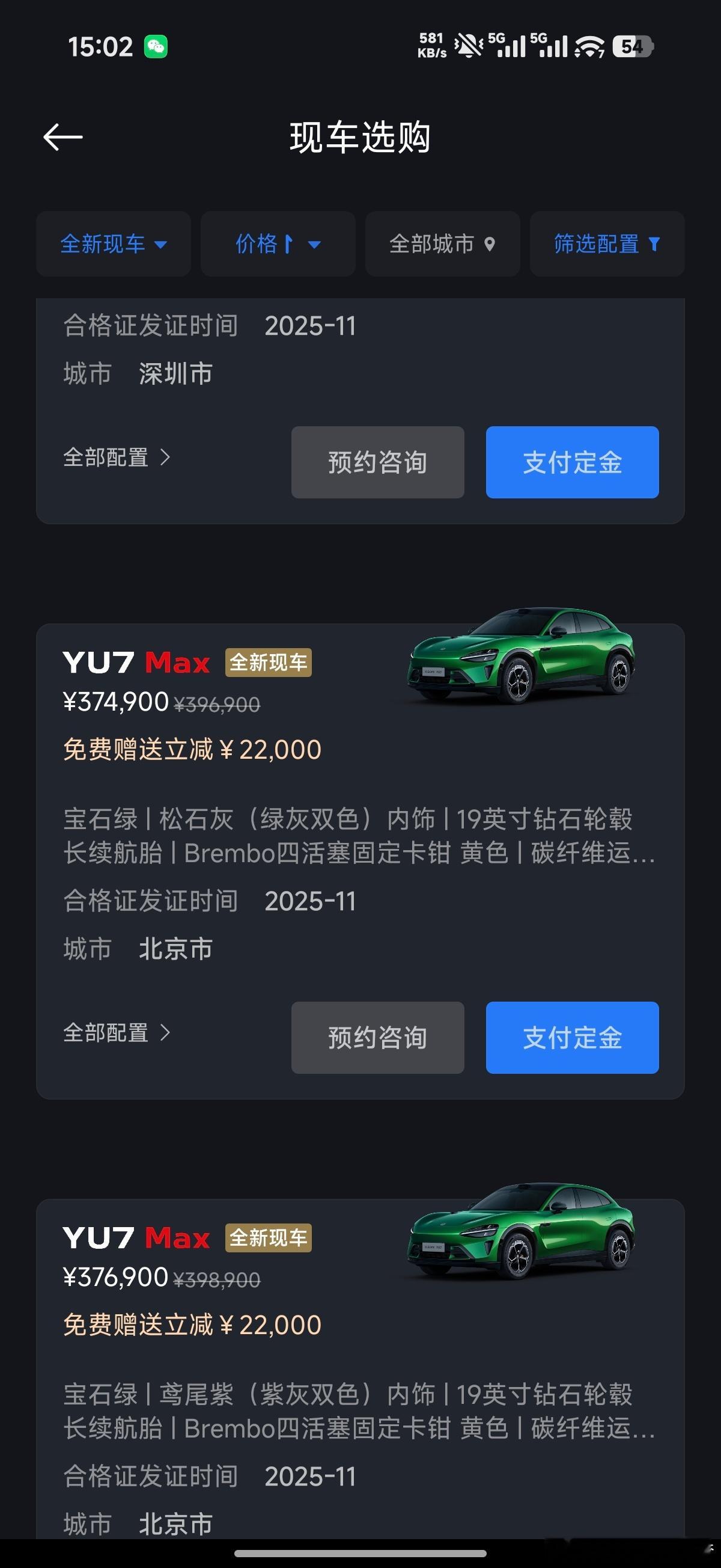 看了一下小米的现车选配,最抢手的SU7标准版本和YU7基本上已经没了,只剩一些顶配,还是比较抽象的选配,比如选到37万了还是19寸轮毂等等我也打听了一圈,这里面也有部分是黄牛选配,当时发现退不了就选个抽象配置,然后小米这边客服过来识别到了催尾款,这些人再往网上发…怎么讲,真实情况果然比我们想象的都复杂,大家在网上看到的并不一定是真相,但小米现车热卖这事儿倒是肯定的,经历了这么多轮攻击现车还是秒空,其实就足以说明一切了,坐等明年新车了小米汽车