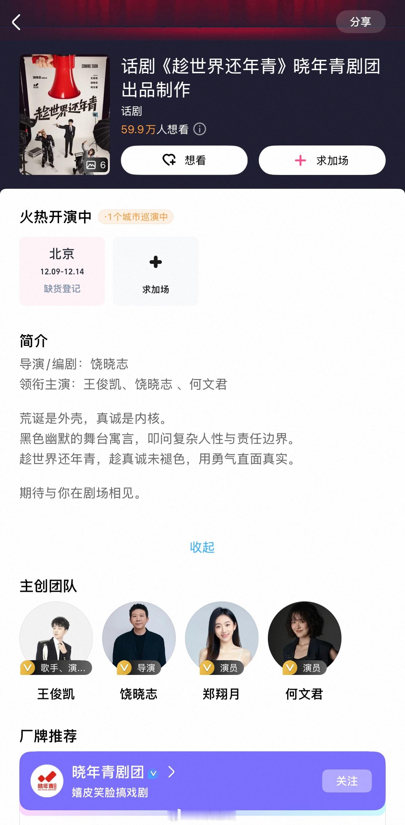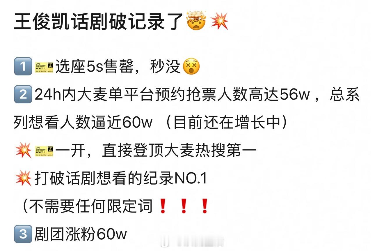 王俊凯出演话剧《趁世界还年轻》开票破纪录!