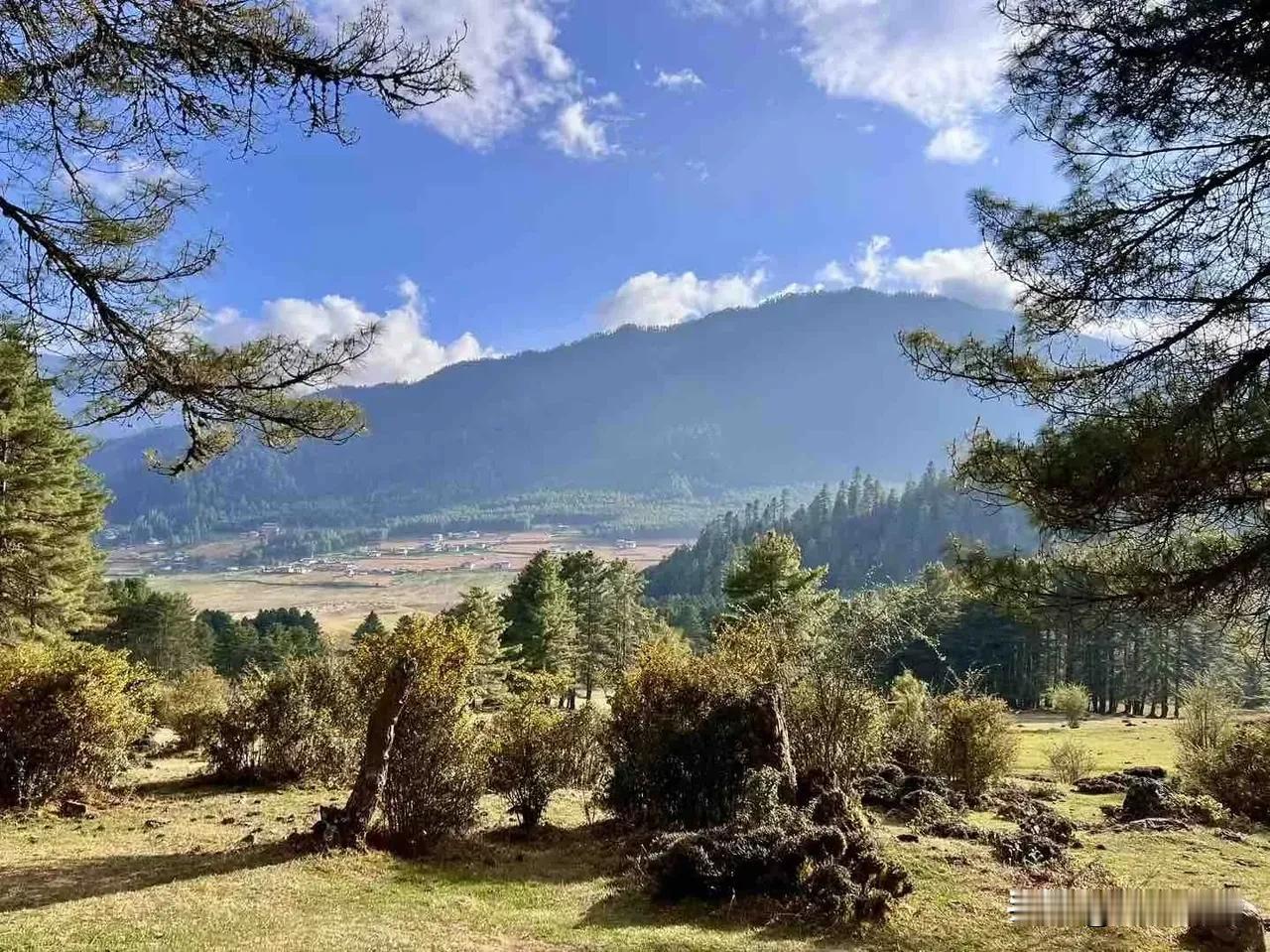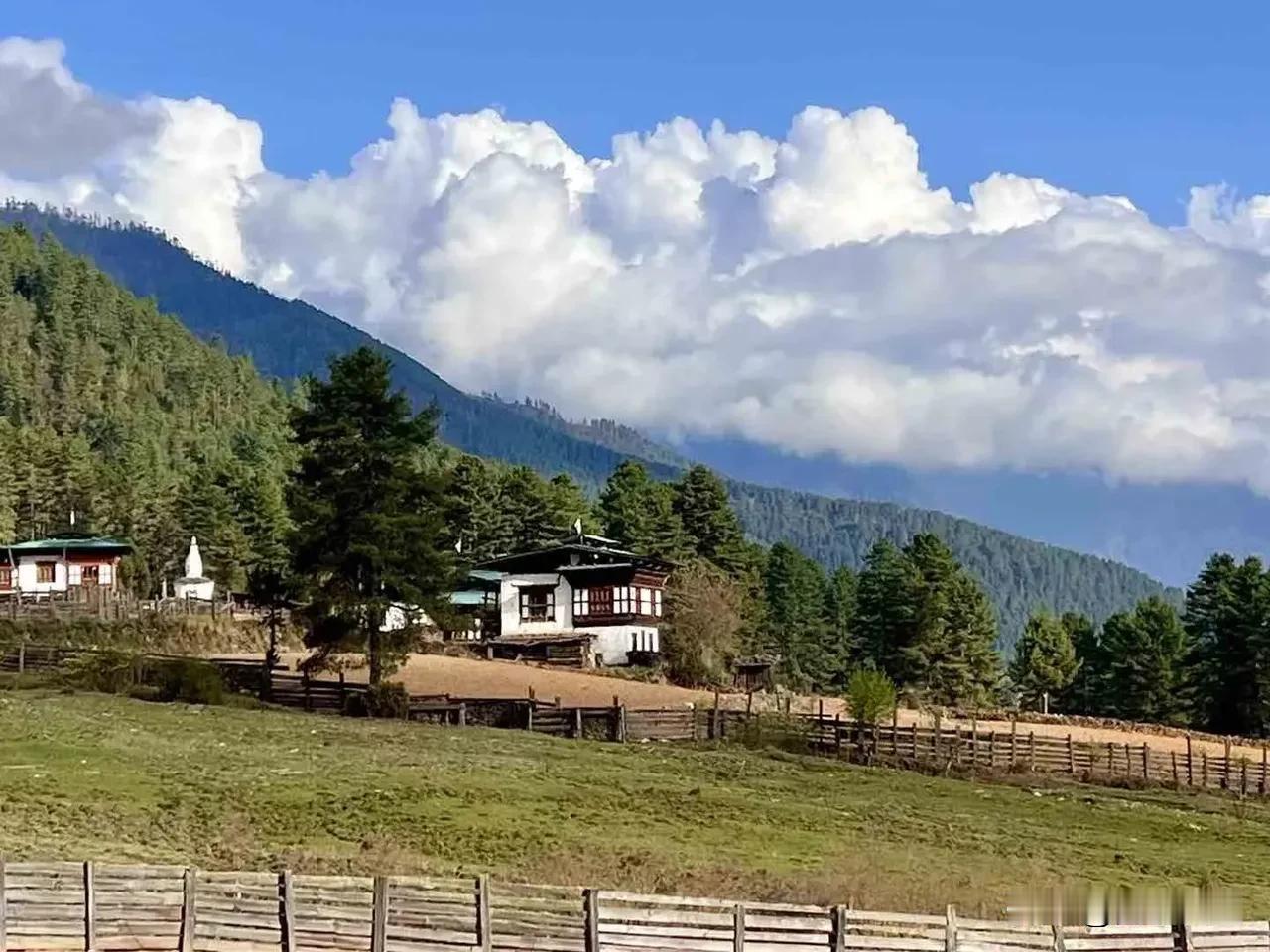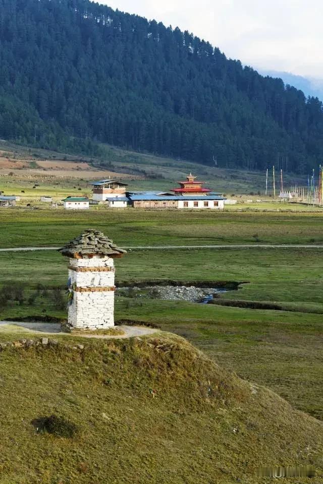 尼泊尔🇳🇵不丹🇧🇹探索之旅[玫瑰] 富毕卡山谷(Phobjikha Valley)是一片广阔的U形冰蚀河谷,拥有不丹最出名的沼泽地,谷地的沼泽上长满了黑颈鹤可以觅食的绿草和一种特殊的矮小的竹子,每年10月底至次年2月,黑颈鹤会从青藏高原飞到这片谷地栖息筑巢,丛林、高山杜鹃与竹林,构成一副美丽的田园风光,有“小瑞士”之称