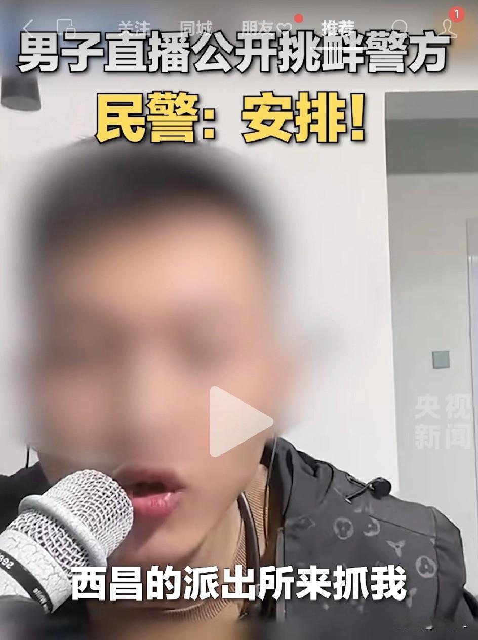 为博眼球,叫嚣“警察有本事来抓我”!西昌男子直播骂警察,几小时后如愿“圆梦”! 见过找打的,没见过这么主动“求抓”的! 近日,四川西昌的李某,在网络上那是相当的嚣张,直播直接对警方口出狂言,肆意辱骂,甚至直接叫嚣让警察“有种来抓他”! 这到底是从哪个原始星球来的彪子啊? 原来,此前李某的好友因寻衅滋事,被新村派出所依法批评教育。 让人大跌眼镜的是,李某不仅未引以为戒,反而心怀不满,为泄私愤,最主要妄图博取网络流量当网红,多次通过网络直播平台,公然对西昌警方进行辱骂、诋毁,甚至狂妄叫嚣“有种来抓我”。 警方面对这样的恶意挑战,也没惯着,既然你有这样的强烈愿望,那必须得成全你! 警方连夜“接单”,几小时后就上门“服务”,直接把他从家里带走。 这下,真让他一朝“梦想成真”,真的“圆梦”了。 这下,李某再也嚣张不起来了,面对镜头,低下头,乖乖认错,“我认识到自己的错误了,以后我会好好改正!” 目前案件正在进一步侦办中。 网友评论炸了: “这年头还真有人主动申请‘银手镯’?” “警察:第一次听到这么奇怪的要求,必须安排!” “想红想疯了,这下真‘红’了——看守所大红墙合影。” “这回出名了,上中国最好的媒体了,这媒体能记你一辈子!” “求锤得锤,真来你又不乐意了,网络不是非法之地!” “想出名,这下滿意了吧!” “要风得风要雨得雨!央妈都发布了啊,可以嘚瑟一辈子了啊!” “天狂必有雨人狂必有祸!为民警点赞!” “九年义务教育是把这家伙给漏了吗?” “这辈子许的愿就成功了这么一个!” 网络直播,绝非法外之地。人人言论自由,并不代表可以无法无天。 任何以侮辱诋毁国家机关形象、扰乱公共秩序为代价博眼球、赚流量的违法犯罪行为,都必将被依法严惩!绝不会姑息! 敢挑衅法律,法律就敢成全你。 信息来源于央视新闻,侵联删!