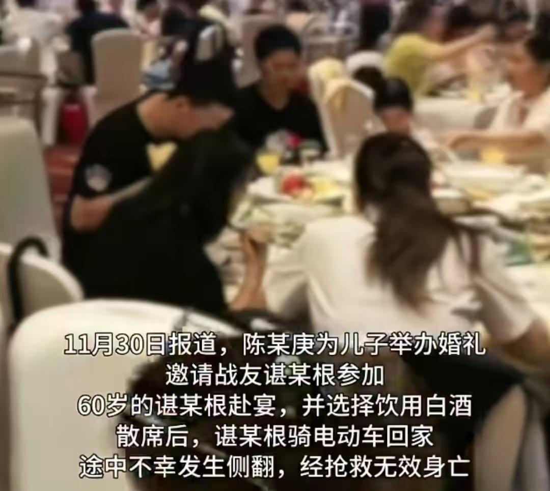 江西一男子婚宴饮酒后骑电动车摔倒身亡,家属起诉新郎及同桌喝酒的索赔45万。男子谌某根受邀参加朋友儿子的婚礼,饮用了白酒后骑电动车回家,途中不幸发生侧翻,导致抢救无效身亡。事后,谌某根妻子和儿子将办酒席的朋友陈某庚及其儿子、儿媳和两名同桌喝酒的告上法庭,要求赔偿45万多元。一审、二审均驳回死者家属的所有诉讼请求。