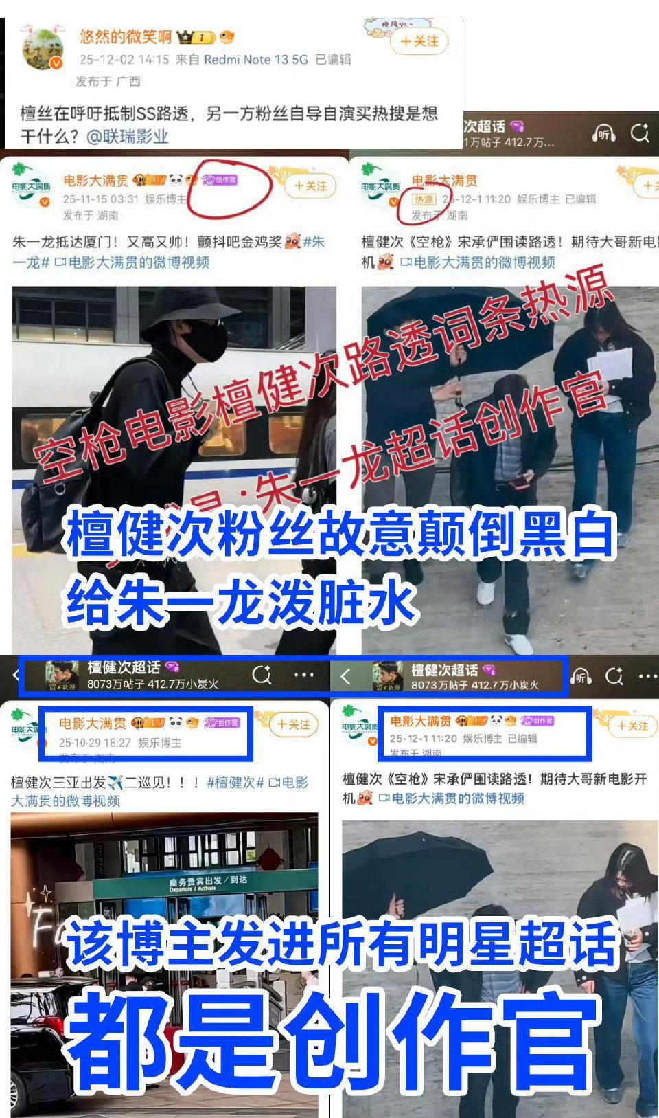 空枪,朱一龙,檀健次①有yxh发檀健次路透,檀粉发现其是朱一龙超话创作官,目的是企图让片方删除戏份②朱一龙粉否认是自家人,觉得是檀团队故意卖路透热搜,目的是逼迫剧方官宣,借通稿和路透搞臭电影宣传生态要求,要求片方对“自导自演买热搜”等行为采取行动③檀粉打假,该yxh“电影大满贯”账号在事件发生期间尚未获得檀超话创作官身份,其后头衔变动属实,拒绝朱家虚假澄清