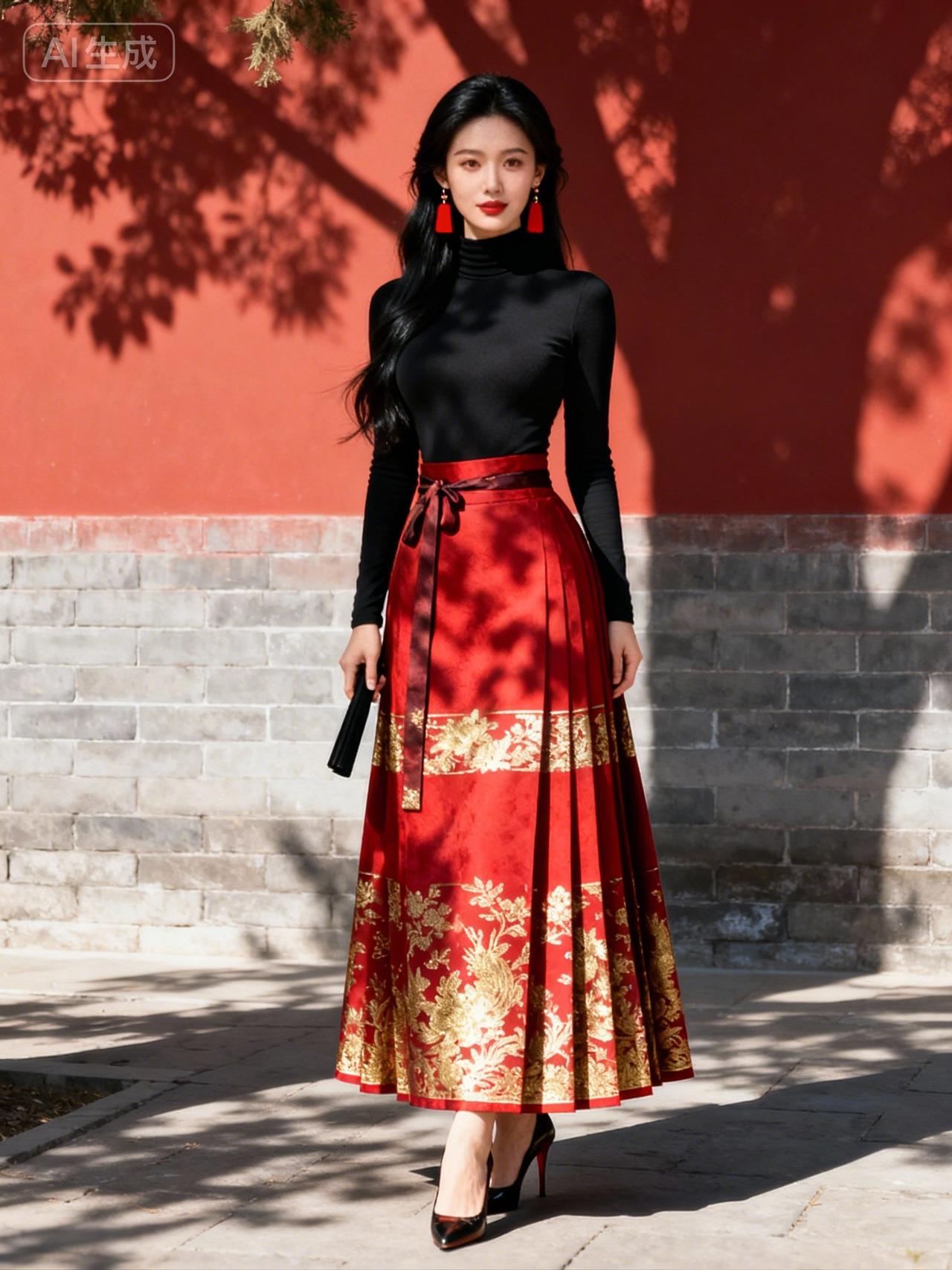 AI红衣飘飘,步履生姿。