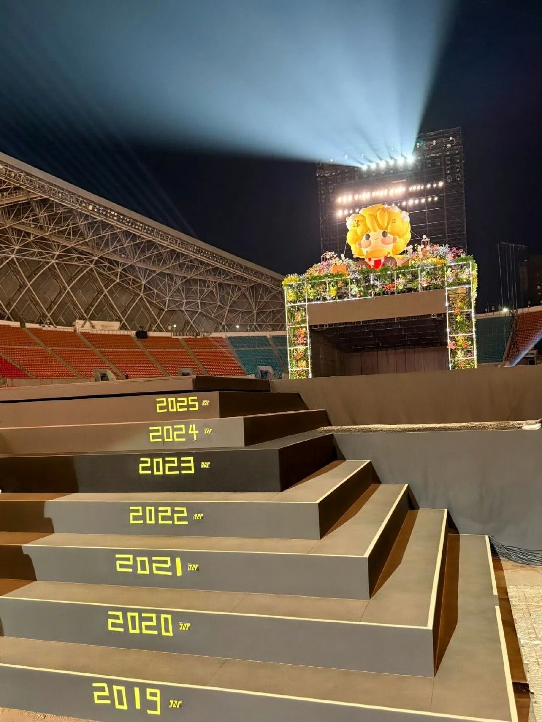 时代少年团台阶设计 从贺峻霖的微博分享中看到,原来时代少年团演唱会后台台阶的设计有小巧思在里面!刚好是2019-2025的年份,代表着时代少年团出道的年份,策划和设计有心了!