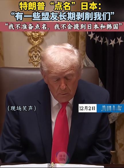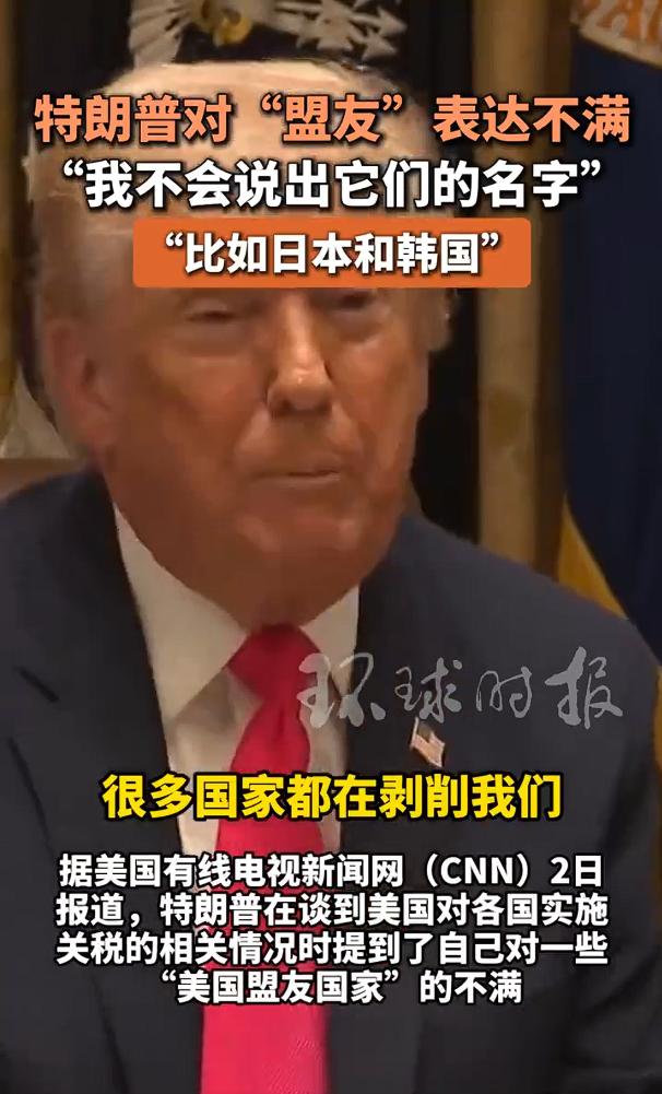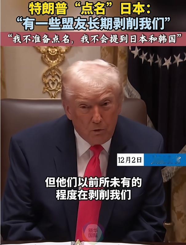 特朗普对日韩盟友表达不满:“有很多国家剥削我们,我不会说出它们的名字”“比如日本和韩国” 最近美国白宫的一场内阁会议,因为特朗普的一番“口是心非”的发言出了名。 原本是为自己的关税政策辩护,说着说着就扯到了盟友身上,一句“很多国家都在剥削我们,包括我们的盟友,他们多年来一直在剥削我们”,吊足了现场人的胃口。 紧接着又补了句“我不会说出它们的名字,我不会提到日本,我拒绝提到韩国”,这番“此地无银三百两”的操作,让现场都传来了轻微的笑声。明眼人都能看出来,这哪里是不点名,分明是把日韩的名字直接钉在了“剥削美国”的标签上。 可能有人觉得特朗普这是一时兴起随口吐槽,但熟悉他的人都知道,这事儿早有铺垫,不是突发奇想。 早在今年6月,他就公开吐槽美日贸易不公平,说日本不让美国汽车进去,却把数百万辆日本汽车卖到美国;后来还抱怨日本不买美国大米,放话要给日本发函抗议。 到了7月更直接,不仅宣布要对所有日韩输美产品加征25%的关税,还在总统专机上吐槽日本“被惯坏了”,说日本占了美国三四十年的便宜,甚至考虑把关税提到30%或35%。 对韩国也没客气,直言韩国应该自己承担防卫费用,还要求把驻韩美军的年度驻扎经费提高到100亿美元。这次内阁会议的发言,不过是把之前的不满又集中说了一遍。 那么特朗普为啥非要这么“阴阳怪气”地吐槽盟友?说白了,核心就一个字:钱。他在会上特意强调,本届政府施加的关税“从全球给美国带来了数十亿美元的收入”,这话其实就是说给日韩听的。 在特朗普眼里,盟友关系本质上就是生意关系,美国给日韩提供安全保护,日韩就得在经济上给美国让利。 可在他看来,日韩不仅没让利,反而借着美国的保护“搭便车”,在贸易上占尽便宜,这买卖不划算,所以要通过吐槽施压,逼着日韩在贸易和军费上做出更多让步。 而且这时机选得也挺有讲究。眼下美国最高法院马上要裁决他政府用《国际紧急经济权力法》实施大规模关税是否合法,这个节骨眼上吐槽日韩“剥削”,也是在给国内舆论造势,暗示自己的关税政策是为了维护美国利益,争取更多支持。 另外,之前日本首相高市早苗搞“挟美制华”那套,还向美国做了不少经济让步,可特朗普照样不买账,这也是在告诉日本,别想把美国当枪使,美国的利益永远排在第一位,想让美国无条件支持日本的冒险行为,门儿都没有。 特朗普这波操作看似滑稽,实则全是算计。那句自相矛盾的“不点名批评”,既发泄了不满,又给日韩留了点“面子”,更重要的是把施压的信号传到位了。 对日韩来说,这可不是简单的吐槽,而是实打实的警告,接下来要么在贸易和军费上妥协,要么就得面对美国更严厉的经济制裁。 而对咱们来说,这也能看出来美国和盟友之间的关系,根本不是什么铁板一块,说白了就是互相算计的利益关系,所谓的“同盟情谊”,在真金白银面前根本不堪一击。