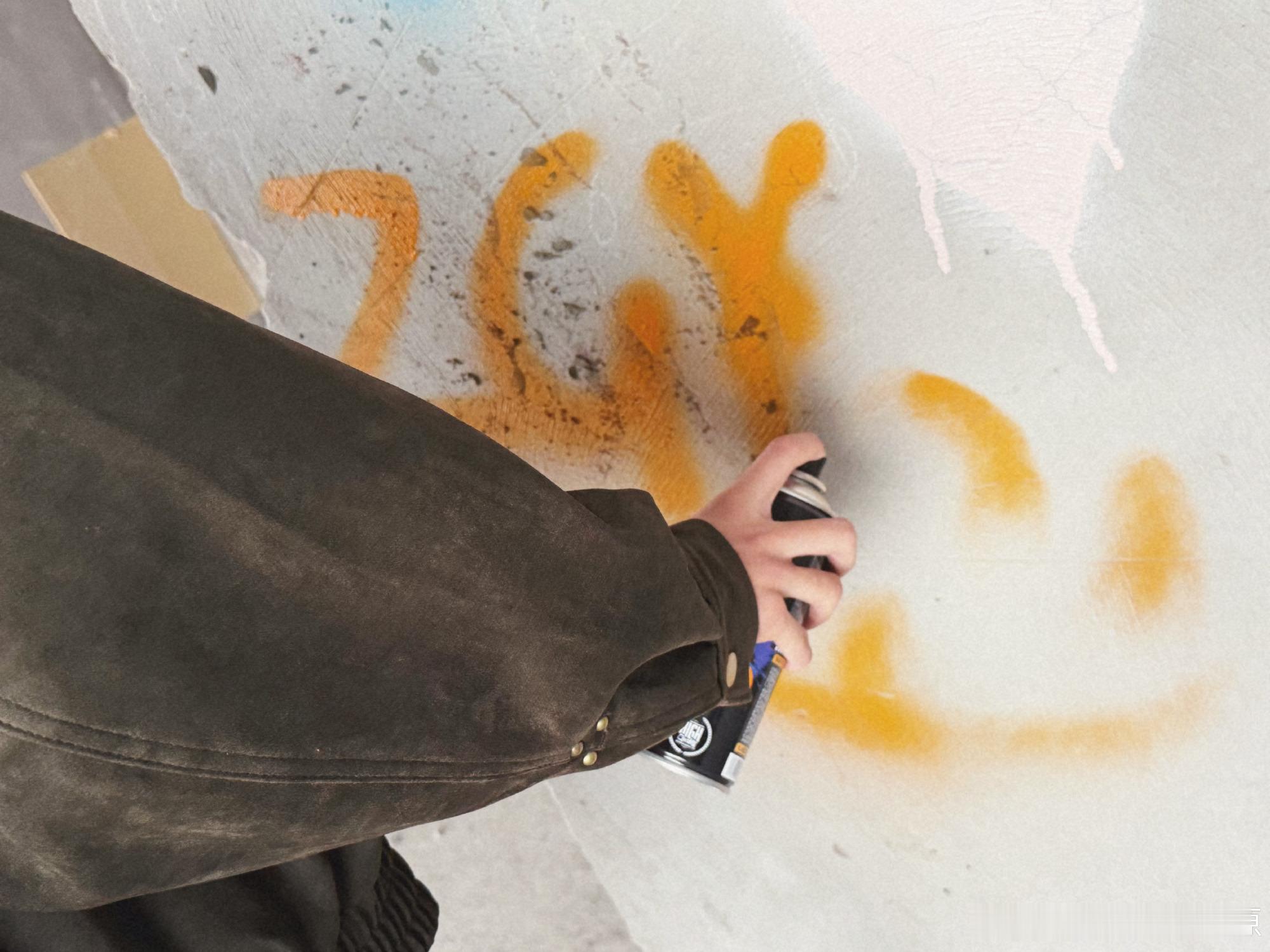 张桂源涂鸦照分享照片✏️红色内搭搭配牛仔裤和棕色麂皮皮衣复古感满满,涂鸦的桂源笑得好开心奥所有人保持苹果肌扁平