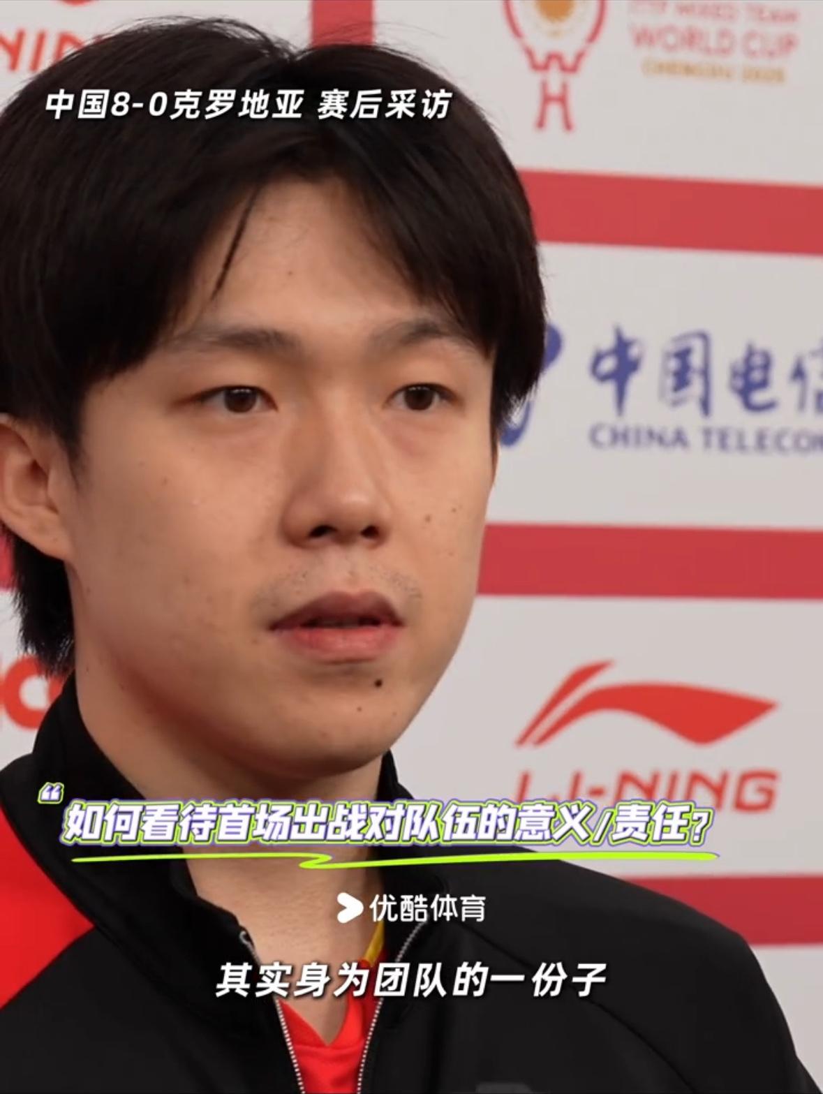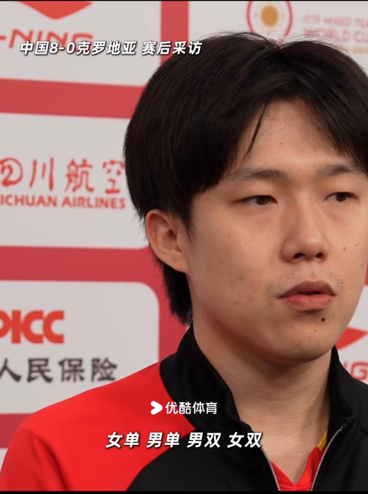 王楚钦采访太会说话了,每一项,每一人都重要,他第一场是混双,相当的给力,开了一个好头! 头哥现在有成熟的感觉了,认真回答问题,没有像年轻时那么敷衍了,是领军人物的发言了,周到的很,板正的小孩,王楚钦也可以独当一面了! 以前能躲就躲,能怼就怼,之前是小孩子的感觉比较多,现在的感觉更好了,成长的印记越来越重!