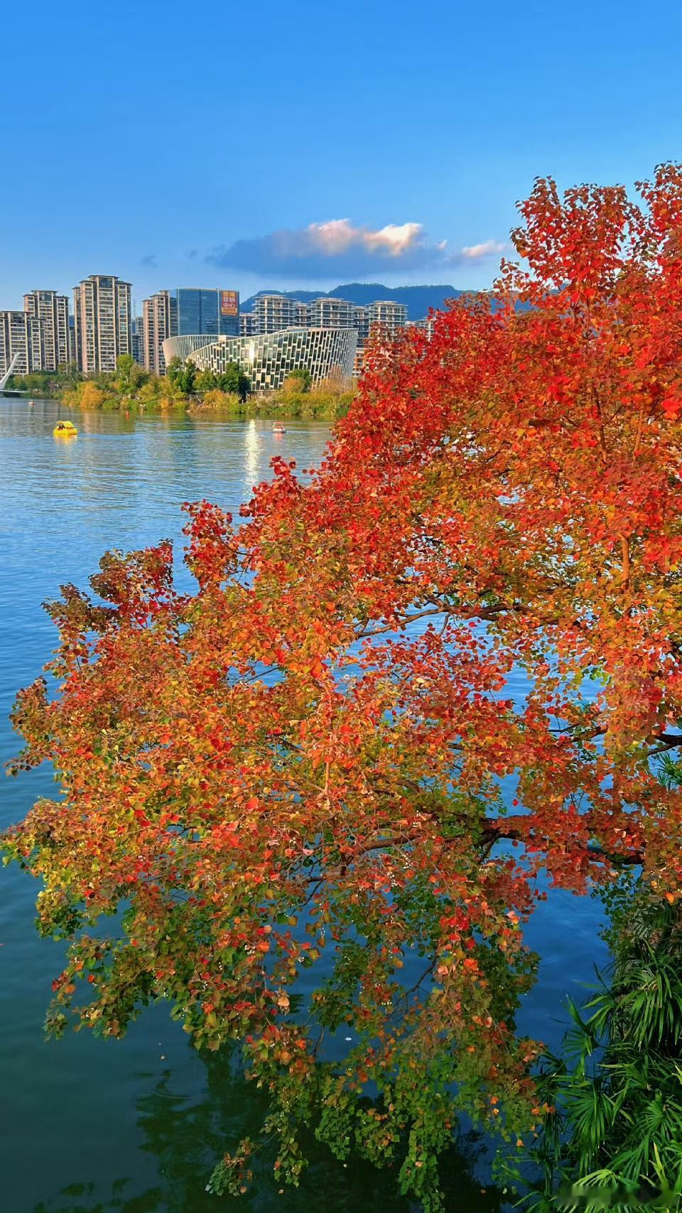 【晋安湖公园很有氛围感】 树叶悄悄染上红色,晋安湖公园冬日的氛围也愈发浓烈,快趁好天气来园里逛一逛呀! Via:新浪微博@咛咛Irene