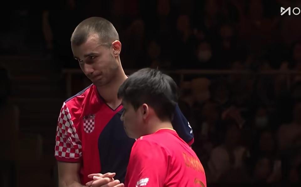 【小石头费了一些周折,战胜拿过张本智和一局的普卡】克罗地亚的男单派出了普卡,迎战我们的林诗栋。这也是一员老将了,今年29岁,在小组赛对阵过张本智和。那场比赛他还拿下了一局,全场观众大声为他加油,没想到莫名其妙圈粉一大波。你觉得混团世界杯最精彩的比赛是哪场 今天对阵小石头,首局打得很精彩,他还是有一些实力的。不是说国乒出马就一定能够拿捏,还是势均力敌的比赛有看点。首局比赛很是胶着,比分咬得很紧,双方轮换到局点,林诗栋被打出了表情包。王皓指导叫了暂停,不免耳提面命一番,最后才14-12险胜。 第二局比赛有点戏剧性,出现了两次挑战,一人一次,但遗憾的是挑战者都失败了。裁判警告普卡发球回抛,普卡较了真,提出挑战鹰眼,结果显示回抛39.75,远超30度,按照规则直接扣分了。重压之下普卡心态崩溃了,林诗栋11-4轻松拿下。中国队8-0战胜克罗地亚队。 冬日生活打卡季