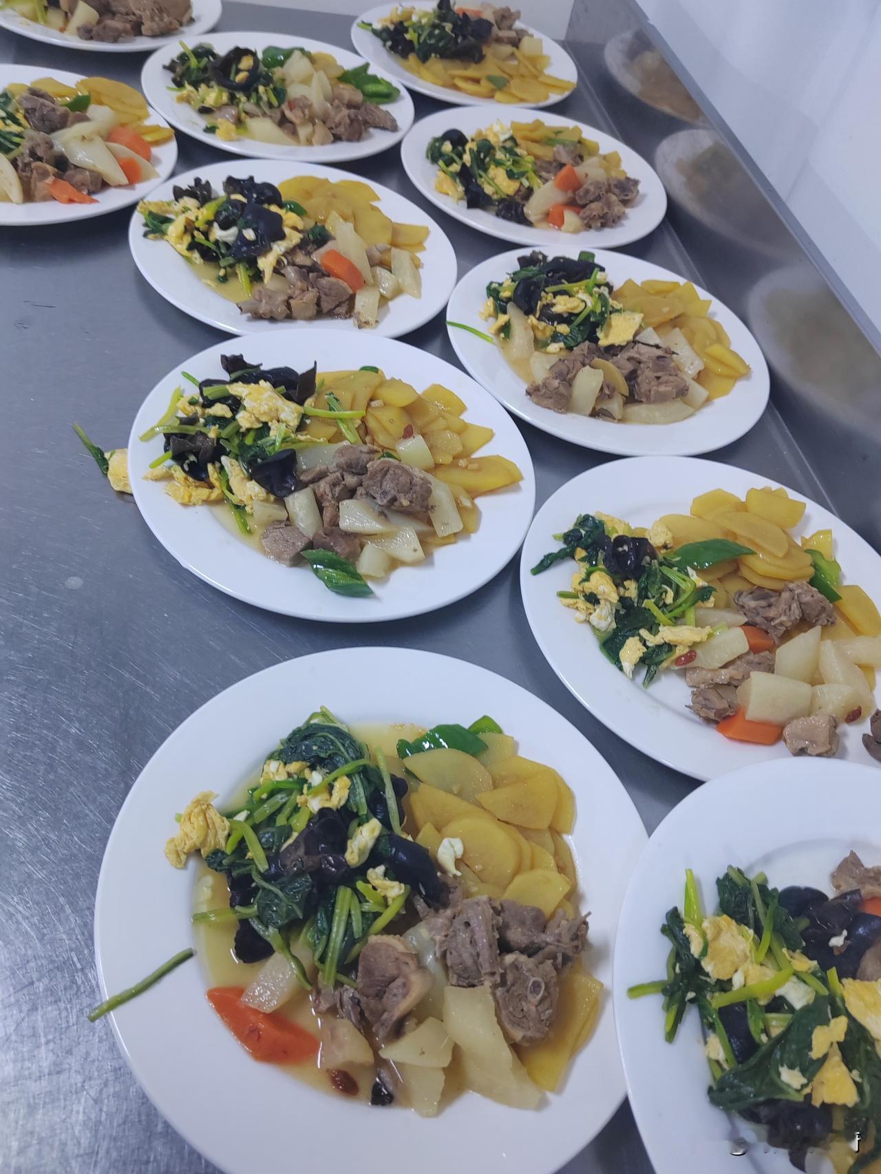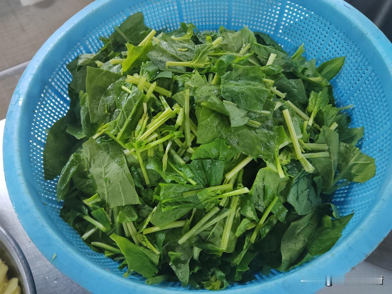 日本上的菠菜,这都放了一个多月了,除了叶子的上端稍微有点蔫以外,其他的地方都还挺好,别人都说日本的蔬菜吃着放心,没有科技与狠活,那这菠菜怎么能放这么久啊?而且还一直不坏。 由于日本的蔬菜比较贵,菠菜只上了10公斤,除了做了几次汤以外,基本上没有炒着吃,而且船长也说过,蔬菜要节约着吃,因为到了澳洲,海关上船检查时,如果没有蔬菜和水果是不行的,所以我一直没舍得吃,放到了现在,上午的时候听说卫检上船来检查了,我寻思着那就炒个菠菜吧,让卫检的看看,我们伙食上了一个多月了,库房里还有很多的青菜,到了最后,因为旋梯的原因没有上来,估计明天还会再来。 虽然说是炒菠菜,但是还是不舍得吃啊,我放了点木耳,打了十几个鸡蛋,合起来炒着吃的,这样剩下的菠菜还能吃一顿,等过几天再吃吧! (今天的午餐萝卜炖鸭,素炒土豆片菠菜炒鸡蛋,茶点是蛋糕)