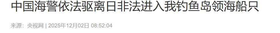 澳媒大肆报道!2025年12月2日,澳大利亚广播公司:中日在一处存在主权争议的岛屿,发生海上对峙! 在中日两国关系,因为日本现首相错误性的涉台言论紧张后。我国多次对日发出警告,但日本方面却不知悔改。不仅拒绝撤回错误性言论,反而还进一步的加大了挑衅行动,其中就包括了钓鱼岛问题。 中日之间的钓鱼岛问题争端发生已久,从20世纪60年代末一直持续到了现在。而在中日关系进一步恶化后,日方再度针对钓鱼岛采取行动!据澳大利亚媒体2025年12月2日的报道,中日双方再度在钓鱼岛附近发生了海上对峙。 据澳洲媒体指出,中国称该岛为钓鱼岛,但日方却称为尖阁诸岛。中国海警表示,有一艘日本船只非法进入钓鱼岛海域,所以中方进行了驱离。 但是日本方面却称,是中方的两艘海警船只接近了日本的渔船,日方进行了拦截,并将中国船只驱离。 根据我国媒体的报道确实如此,2025年12月2日的时候,我国海警局新闻发言人公开表示。日本方面的渔船非法进入我国钓鱼岛领海,中国海警舰艇依法对其采取了相应的措施。 在公开回应这件事情的时候,再度重申了钓鱼岛及附属岛屿是中国固有领土的这一事实。根据可以追溯的历史文件,可以发现早在1403年的时候,我国就已经有文献记载了钓鱼岛的存在。 而在多年之后的相关文献中,同样也有明确记载,钓鱼岛早在明朝时期就已经纳入了中国的海防管辖范围内。所以历史文献足以证明,钓鱼岛是属于中国的固有领土。 但日本方面却忽略历史事实,一味的去进行挑衅,这也是在进一步的逼迫我国采取反制行动。对此,您怎么看? (信息来源:中国海警依法驱离日非法进入我钓鱼岛领海船只-央视网) (信息来源:ABC中文-20251202)