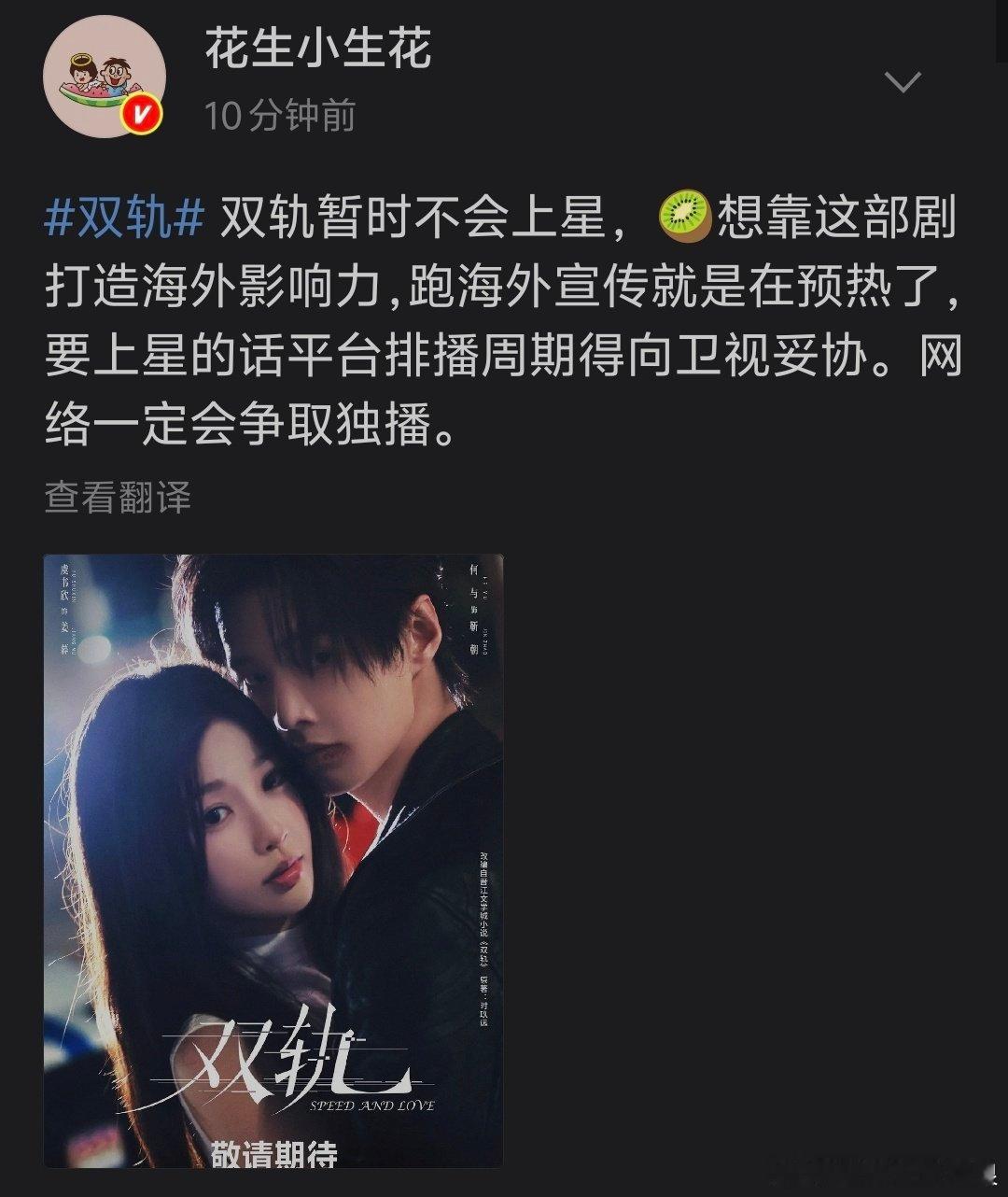 🍉主否认虞书欣《双轨》上星江苏卫视,跑海外宣传就是预热,想打造海外影响力。