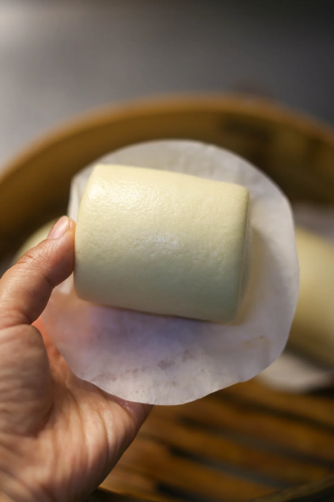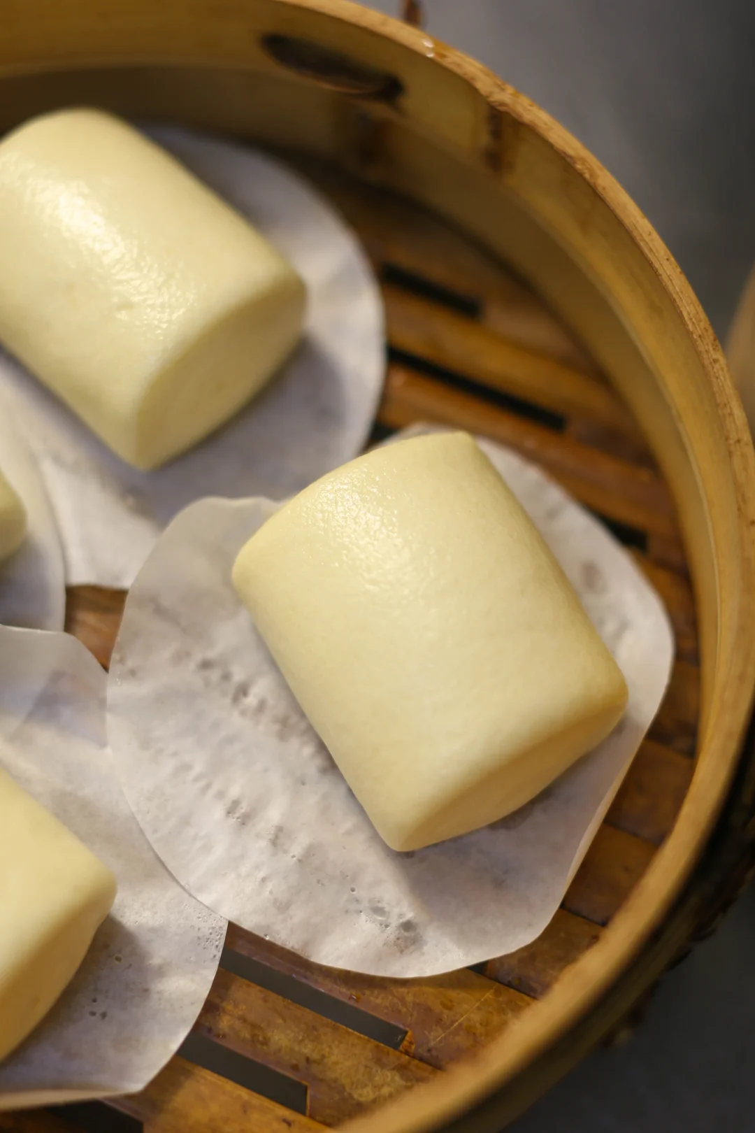 一次发酵的老面馒头 老面团:中筋面粉80克,清水40克,酵母粉1克 主面团:中筋面粉 300克 酵母粉3克 水160克 砂糖5克 步骤: 1:将老面面团的清水和酵母搅拌均匀成酵母水,缓慢倒入面粉中,揉成团,密封放置室温发酵30分钟,确定发酵后再放入冰箱冷藏一个晚上,成为老面。 2:将主面团中的清水、酵母和糖搅拌均匀成酵母水,少量多次倒入面粉中,搅拌成团,加入老面团。 3:揉成光滑的面团,用擀面杖压扁擀长,做第一次3折,再擀长,做第二次3折。 4:最后擀成长35公分、宽25公分的长方形,从上到下卷起来,切成每个宽7公分的馒头。 5:找一个容器烧上水,大约40-50度就关火,馒头放到蒸笼里,放在烧好水的容器上饧发大约30分钟。 6:锅中放入4分满的水,开大火烧开,饧发好的馒头放入,上气之后开始计时大火蒸16分钟,蒸好后开盖,晾凉密封保存冷冻即可。 小贴士: 1:如果是手揉面团,水可以加到160克,水与面粉的比例52%-53%,相对比较柔软好揉。如果是机器搅拌,水加到150克正好。 2:百分比算法:水(克)➗面粉(克)✖️100% 3:老面已经经过长时间发酵了,产生很多酵母菌,不用再静置了,可以马上擀。 揭开锅盖的刹那,麦香扑了满面。馒头表皮光洁,带着自然发酵的微黄。趁热撕开,内里是云朵般的蓬松,气孔均匀细密。空口吃,是纯粹的、扎实的粮食甘甜;配一碟腐乳或辣椒酱,又是另一番酣畅。 面引子留下一小块,续上清水和面粉。明天,它又会醒来。老面馒头的好,就在这份传承里——今日的麦香,连着昨日的雨露,也养着明日的炊烟。