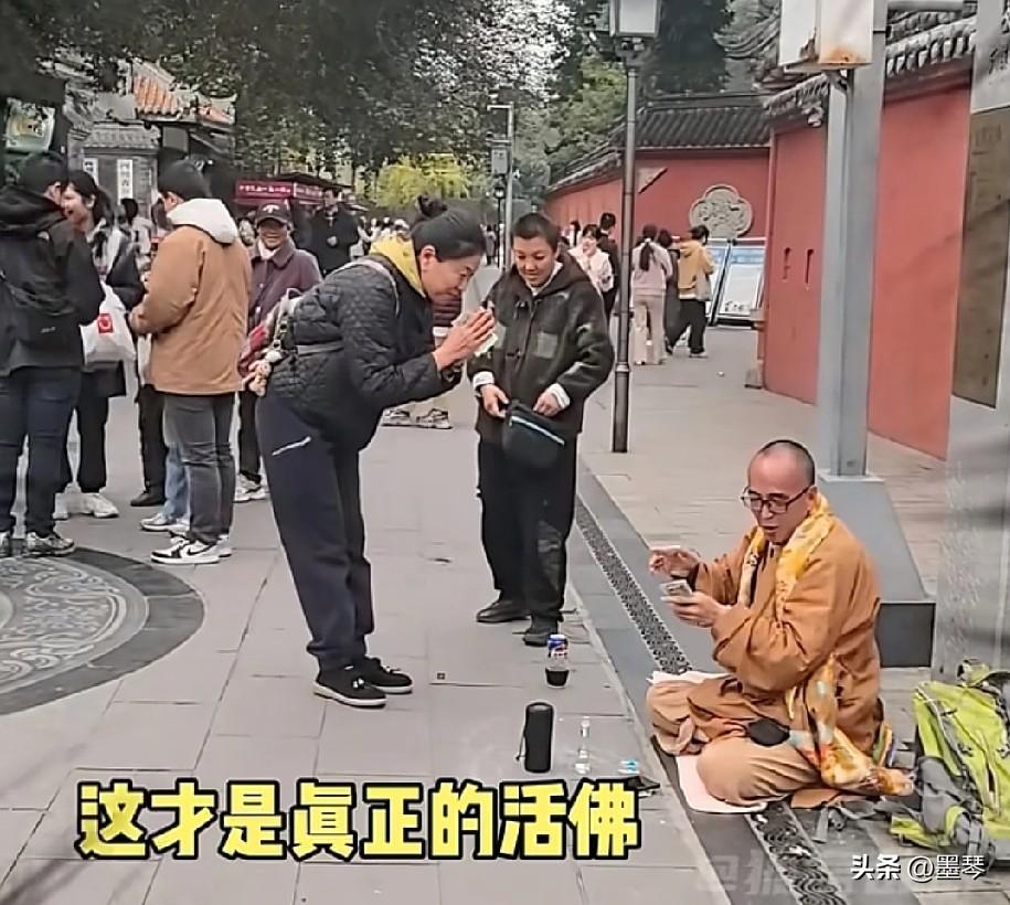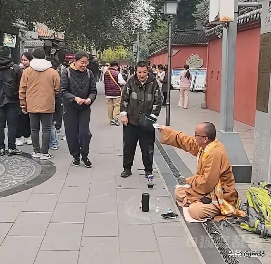 一直都以为和尚是跟普罗大众要钱的,可成都文殊院的和尚偏偏就与众不同,给普罗大众发钱,还顺便说一句:“好好赚钱!” 天啦噜,这世道真的有活佛出现了吗? 这画面也太反差萌了吧~红墙下的师父一边递钱一边喊“好好赚钱”,烟火气里裹着暖意,倒真像把“活在当下”的通透揣进了凡人的日子里。 四川 成都