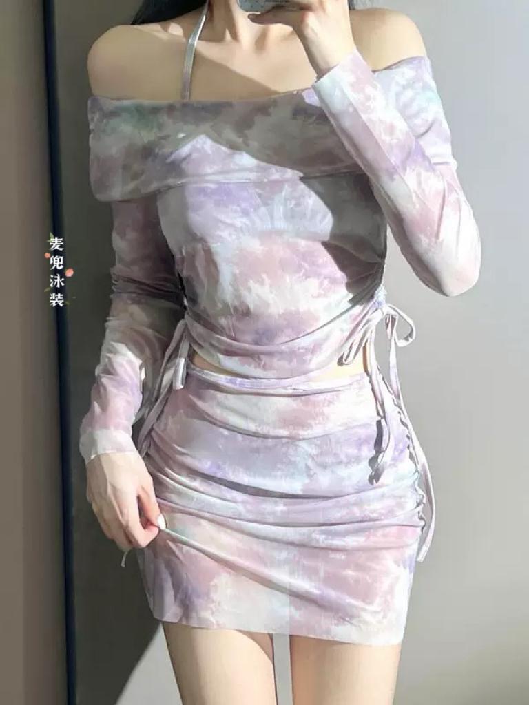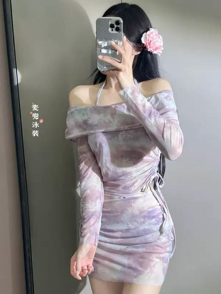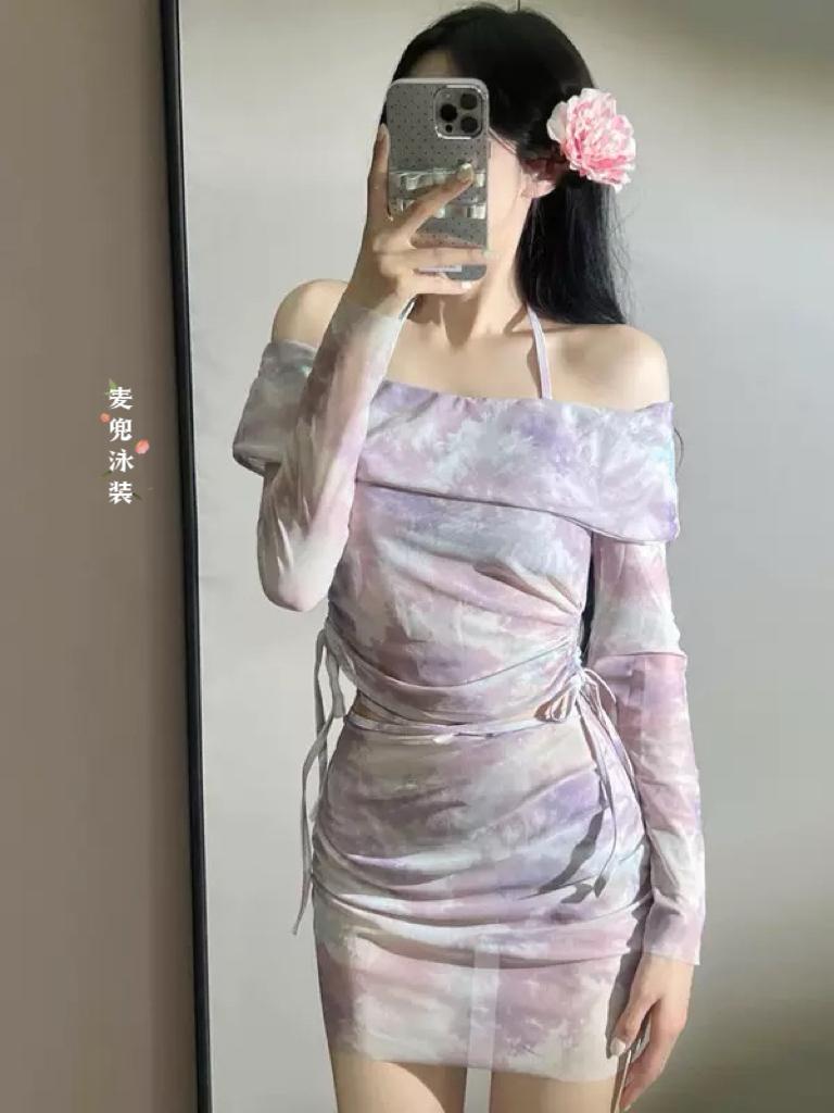 香芋紫色高级感扎染度假🏖️显瘦温泉泳衣超美泳衣纯分享 泳装和比基尼有什么区别 比基尼 泳衣 沙滩泳装美女比基尼