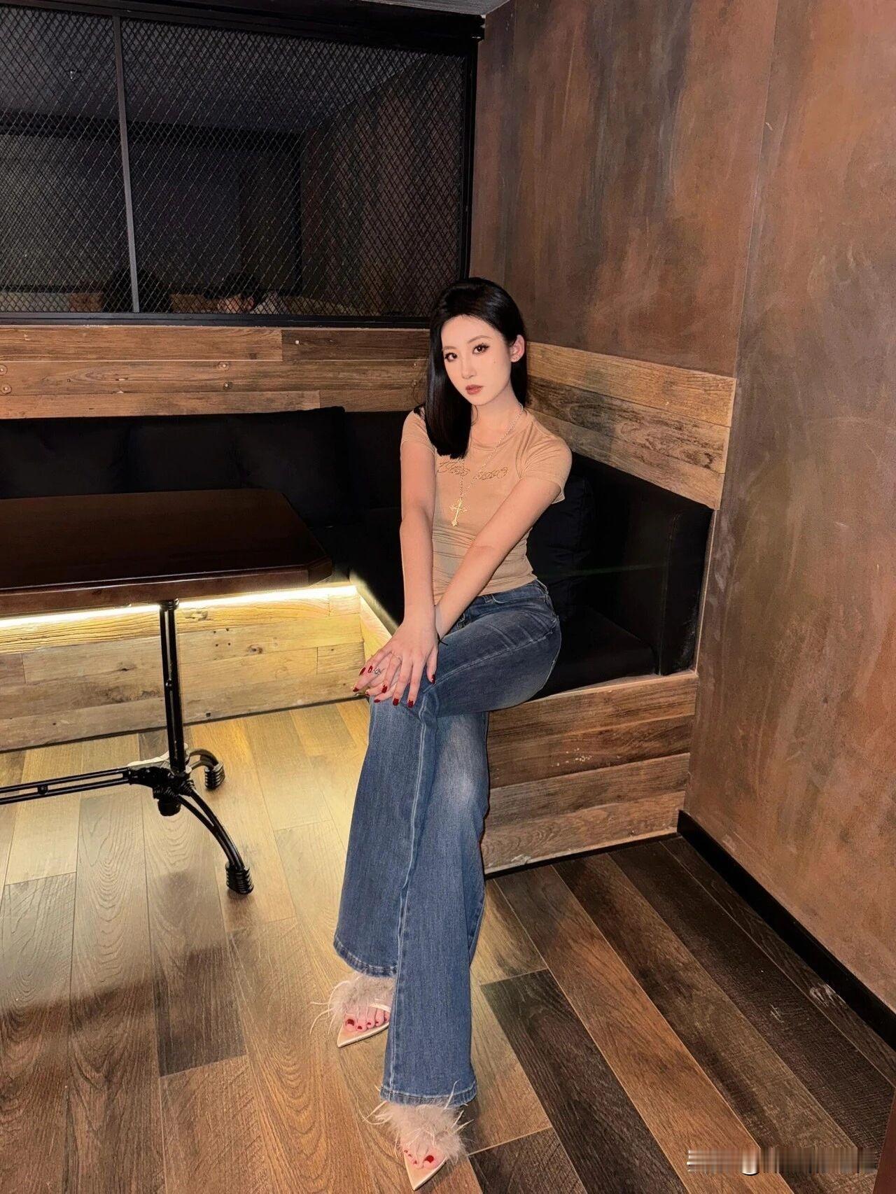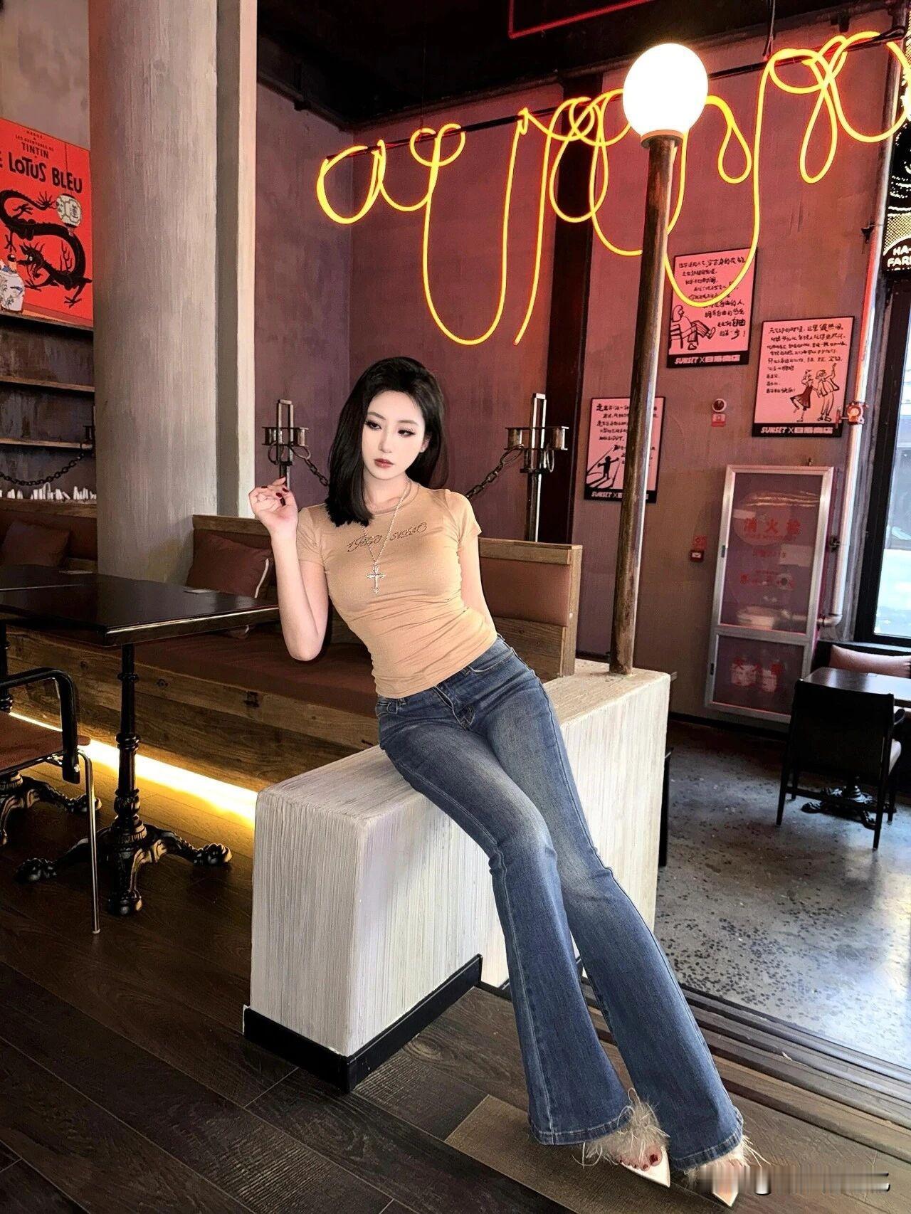 奶茶棕短T撞上微喇牛仔,再来一双毛绒高跟,走路都带港风滤镜![比心][比心][比心] 粉棕穿搭 焦糖棕穿搭