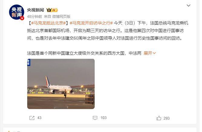 12月3日下午,马克龙携夫人布里吉特抵达北京! 从曝光的画面我们可以看出,当天马克龙穿短款小风衣现身,而法国第一夫人布里吉特穿一件红色小风衣,还挽着老公马克龙的胳膊走下飞机,下飞机后他们受到热烈的欢迎,现场不仅有红毯,还有仪仗队,不过好像没有鲜花的小姐姐。 其实马克龙要来北京前一段时间就有不少媒体曝光了,这次马克龙访华除了来北京之外,他们还要去成都,不知道会不会看大熊猫。到时候肯定会有很多人偶遇法国第一夫人,每次都是在网络上看到,现实中要是看到布里吉特估计是超幸运。