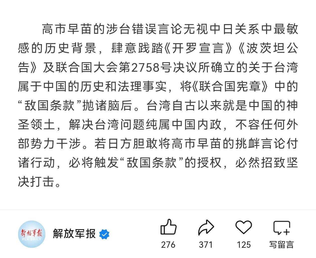 美国已经发现被中国套路了,高市早苗的操作正在把美国带进沟里! 日本想把台湾问题国际化,结果中国将其提升到了战后秩序,全球各国中除了新加坡撒币外全都默不做声,连一向与中国作对各种作妖的以色列都不敢乱放屁,因为二战德国屠杀犹太人让以色列无法在战后秩序这个问题上为日本站台! 当高市早苗去年在华盛顿智库抛出"台湾有事即日本有事"的论调时,东京的算盘打得很响:借美国对华焦虑,把台海问题包装成"民主阵营保卫战",顺带洗白日本战后对台的历史包袱。 但北京的反制出乎所有人意料——不是抗议照会,而是直接搬出1945年的《波茨坦公告》第七条:"开罗宣言之条件必将实施,而日本之主权必将限于本州、北海道、九州、四国及吾人所决定其他小岛之内。" 这招"降维打击"让整个西方外交圈瞬间沉默——因为中国把台湾问题从区域争端,升格为二战胜利果实的捍卫战。 美国最先反应过来自己被"套牢"了。2023年拜登政府发布的《国家安全战略》还在强调"基于规则的国际秩序",但这个"规则"的根基正是1945年建立的战后体系。 当中国在联合国人权理事会公开播放1943年《开罗宣言》签署影像时,会场里60多个二战受害国的代表下意识坐直了身子——因为画面里罗斯福、丘吉尔、蒋介石共同确认的"台湾归还中国",正是他们本国主权的法理来源。 美国国务院发言人不得不尴尬解释:"我们的一个中国政策基于《台湾关系法》和三个联合公报",但这话在联合国走廊里被东欧外交官私下嘲笑:"他们在否定自己参与缔造的秩序。" 日本没想到最致命的一击来自特拉维夫。2024年3月,以色列外长科恩原定出席东京"自由开放印太"会议,临行前突然取消行程。 消息人士透露,耶路撒冷收到北京转交的1942年日本驻伪满洲国领事报告,里面详细记录日军如何与纳粹合作迫害在华犹太人。 当以色列大屠杀纪念馆研究员发现,当年救助犹太人的中国外交官何凤山,其签发的"生命签证"正是从台湾基隆港出境时,特拉维夫的立场彻底动摇——支持日本意味着否定自己的立国根基。 现在以色列驻联合国代表见到日本同事,只会礼貌点头,绝口不提台湾。 欧洲的沉默更让东京心寒。2024年慕尼黑安全会议期间,德国外长贝尔伯克被问及台湾问题,罕见引用了1972年《中日联合声明》:"德意志联邦共和国政府承认中华人民共和国政府是中国的唯一合法政府,台湾是中国领土不可分割的一部分。" 这话让在场的日本防卫相浜田靖一脸色铁青。会后欧盟外交政策负责人博雷利私下对记者说:"我们不能为了美国的地缘政治,否定自己用几千万人生命换来的战后秩序。" 这种情绪在波罗的海三国尤为明显——这些曾被苏联吞并的国家,比谁都清楚破坏领土完整原则的后果。 新加坡的"撒币"行为反而暴露了日本的孤立。2024年6月,新加坡宣布向"印太安全倡议"注资5000万美元,条件是设立"台海稳定"专项。 但这笔钱在东盟内部引发嘀咕:马来西亚外长赛夫丁公开说:"1951年《旧金山和约》已经明确日本放弃对台湾的一切权利,现在讨论台湾地位就是在否定东南亚国家的独立法理。" 菲律宾前总统杜特尔特更直接:"我们的国界线是二战后画的,动台湾等于动南沙。" 东盟十国里,只有新加坡愿意当这个"出头鸟",因为它的港口经济太依赖美国军舰停靠。 最让美国难受的是"后院起火"。2024年9月,墨西哥总统洛佩斯在联大发言时,突然提到1848年《瓜达卢佩-伊达尔戈条约》:"正是基于战后条约的神圣性,墨西哥才承认得克萨斯属于美国。" 这话表面中立,实则敲打华盛顿——如果美国纵容日本否定二战对台决议,那么拉美国家是否也可以重新讨论领土问题?加拿大外长乔利随后在G7会议上提议"谨慎处理台湾历史问题",被美国国务卿布林肯当场打断,但明眼人都看出,北美盟友正在为美国的冒险政策划红线。 中国的"战后秩序牌"之所以奏效,在于抓住了两个历史命门:一是所有战后独立国家的主权合法性,都源于1945年的国际协议;二是美国为首的西方,恰恰是这套秩序的最大既得利益者。 当日本试图用"台湾有事"制造新危机时,中国巧妙地把问题转化为:要不要守护父母辈用鲜血换来的和平?这种叙事让澳大利亚退伍军人协会都坐不住了——他们公开反对政府介入台海,理由是"我们的祖父辈在新几内亚战场流血,不是为了让东京再次染指台湾"。 现在华盛顿的智囊们终于想明白:中国根本没兴趣跟美国打"台湾牌",而是在打"秩序牌"。当高市早苗们还在幻想拉拢40国联署声明时,北京已经让127个国家在联大重申支持二战决议。 这种降维打击让美国的"民主同盟"体系出现裂痕——毕竟没有哪个国家愿意为了日本的历史修正主义,输掉自己的立国之本。 就像开罗会议旧址的讲解员对游客说的:"79年前写进白纸黑字的承诺,不是几句'基于规则'就能推翻的。"