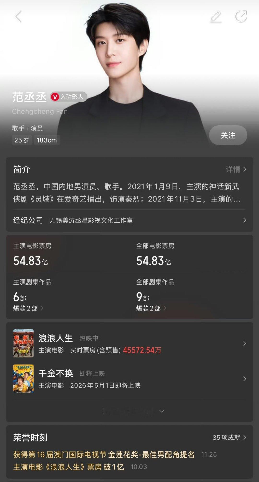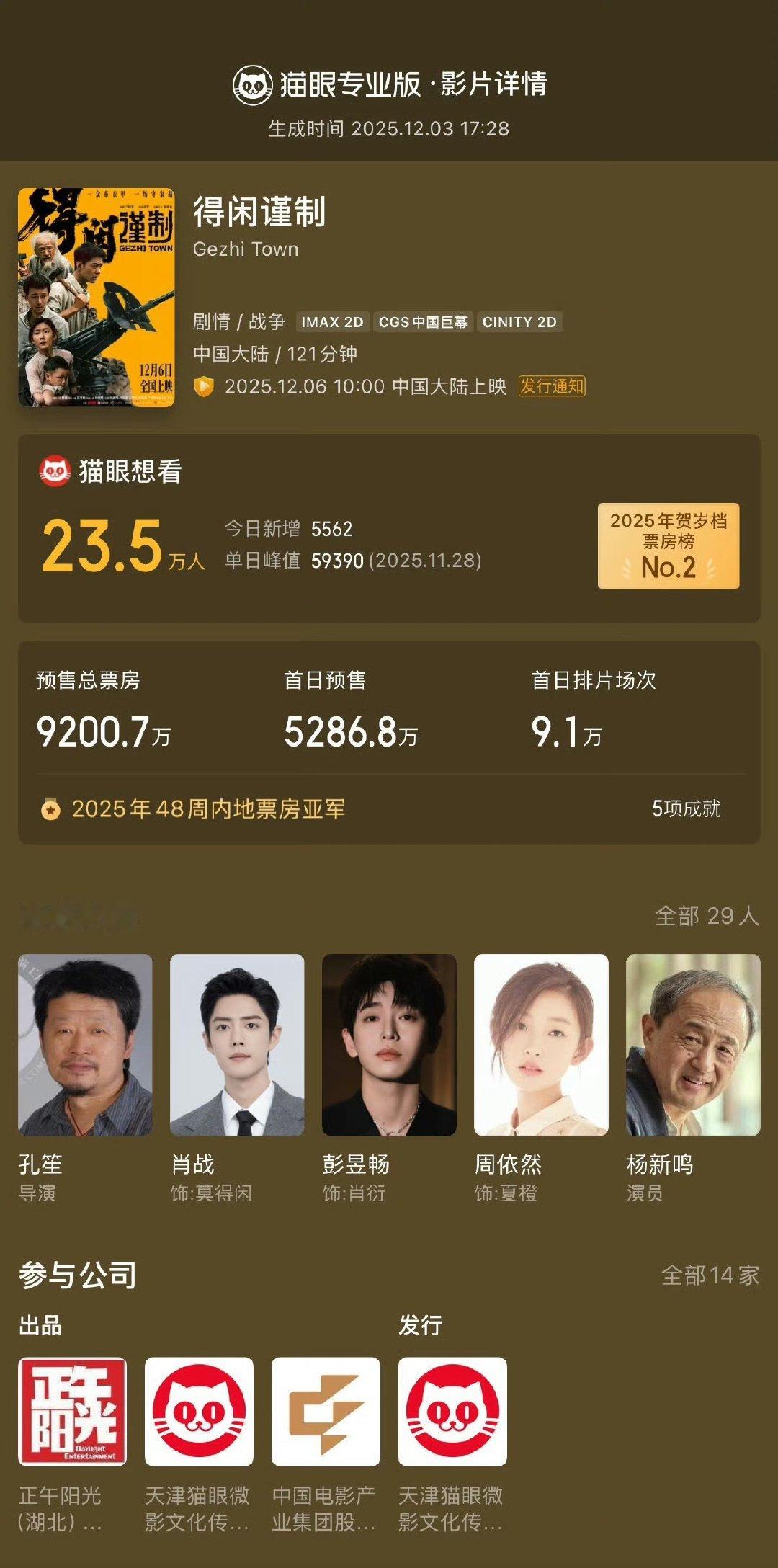 范丞丞包场支持肖战得闲谨制范丞丞工作室 包场支持电影《得闲谨制》,截至当前影片预