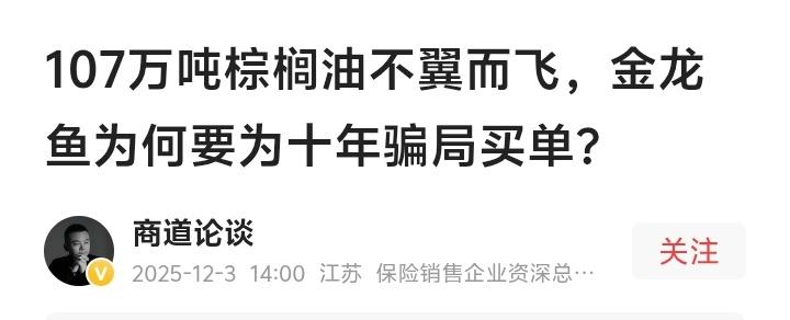 惊天骗局!107万吨“空气油”掏空金龙鱼18亿,国民餐桌背后竟藏十年金融黑洞,你的厨房安全吗? (来源:综合网络平台信息与公开报道) 谁能想到,我们厨房里那瓶金黄透亮的食用油,背后竟牵扯着一场持续十余年、金额高达数十亿的“空气买卖”?当法院的判决书落下,勒令金龙鱼旗下公司赔偿18亿元巨款时,这不仅仅是一起商业纠纷的终结,更像是一面镜子,照出了光鲜品牌背后,资本游戏对民生根基的隐秘侵蚀。 事情要从一张薄薄的“仓单”说起。安徽华文公司,一家粮油贸易商,将总计107万吨的棕榈油“存入”了金龙鱼子公司广州益海的仓库。仓库开出仓单,证明货已入库。华文公司随即用这张代表巨额货物的“纸”,从云南惠嘉公司套取了巨额资金。这听起来是标准的供应链金融操作,货物质押,三方共赢。 然而,魔鬼藏在细节里。那107万吨棕榈油,绝大部分从未真实存在过。它可能只是报表上的数字,是仓库里零星油罐的“无限放大版”。一个需要十个巨型专业油罐才能装下的天文数字,就这样在各方“心照不宣”或“管理失察”中,完成了从实物到信用工具的魔术般转换。直到资金链断裂,债主上门提货,才惊觉面对的是“空气”。 仓库方广州益海喊冤,自称只是提供场地,被贸易商蒙蔽。但法院的判决冰冷而清晰:作为专业的仓储管理方,对库存货物负有核实、监管的基本责任。开具虚假或严重失实的仓单,就是为骗局背书,必须承担连带赔偿责任。18亿,不是惩罚,是为这场集体“疏忽”或“默契”付出的代价。 这18亿对金龙鱼意味着什么?是其2024年全年净利润的三分之一。这笔巨款足以拖累其业绩报表,影响股价信心。但比金钱损失更严重的,是品牌信誉的裂缝。一家以“健康”“放心”深入人心的粮油巨头,其体系内竟能发生如此荒诞的“库房蒸发”事件,消费者不禁要问:我买的油,从源头到灌装,到底经历了多少道“信任”的冒险? 深入看去,这绝非孤立的偶然。它是行业高速扩张期,片面追求规模与金融收益,而轻视底层风控与实体监管的典型恶果。当仓储费、担保费、客户绑定等短期利益摆在面前,对货物“是否存在”的实质性核查,便可能让位于流程和表单。这种“重纸面、轻实物”的思维,在诸多大宗商品贸易领域都曾埋下祸根。 更令人深思的是,粮油行业关乎国计民生,是社会稳定器。其供应链的任何一环,都应如履薄冰。当金融游戏的泡沫侵入这个领域,将实实在在的食用油变成账本上的筹码时,风险便已悄然转移至每一个消费者的餐桌。今天消失的是棕榈油仓单,明天是否会动摇其他基础食品的安全防线? 金龙鱼的遭遇,给所有企业,尤其是民生行业巨头敲响了警钟:规模再大,品牌再响,一旦脱离了对实体业务的敬畏、对基本规则的坚守,大厦倾覆可能始于一个不起眼的漏洞。资本运作可以带来增长,但唯有扎实的管理和对产品的尊重,才能赢得持久的信任。 对于我们普通消费者而言,此事件也提醒我们,在关注品牌和价格的同时,或许也应多一份对产品背后供应链透明度的关切。市场的选择,最终会流向那些真正珍视“食安”如山的品牌。企业的“良心”,终究要经得起仓库里每一滴油的检验。 金龙鱼陷骗局 食品安全警钟长鸣
