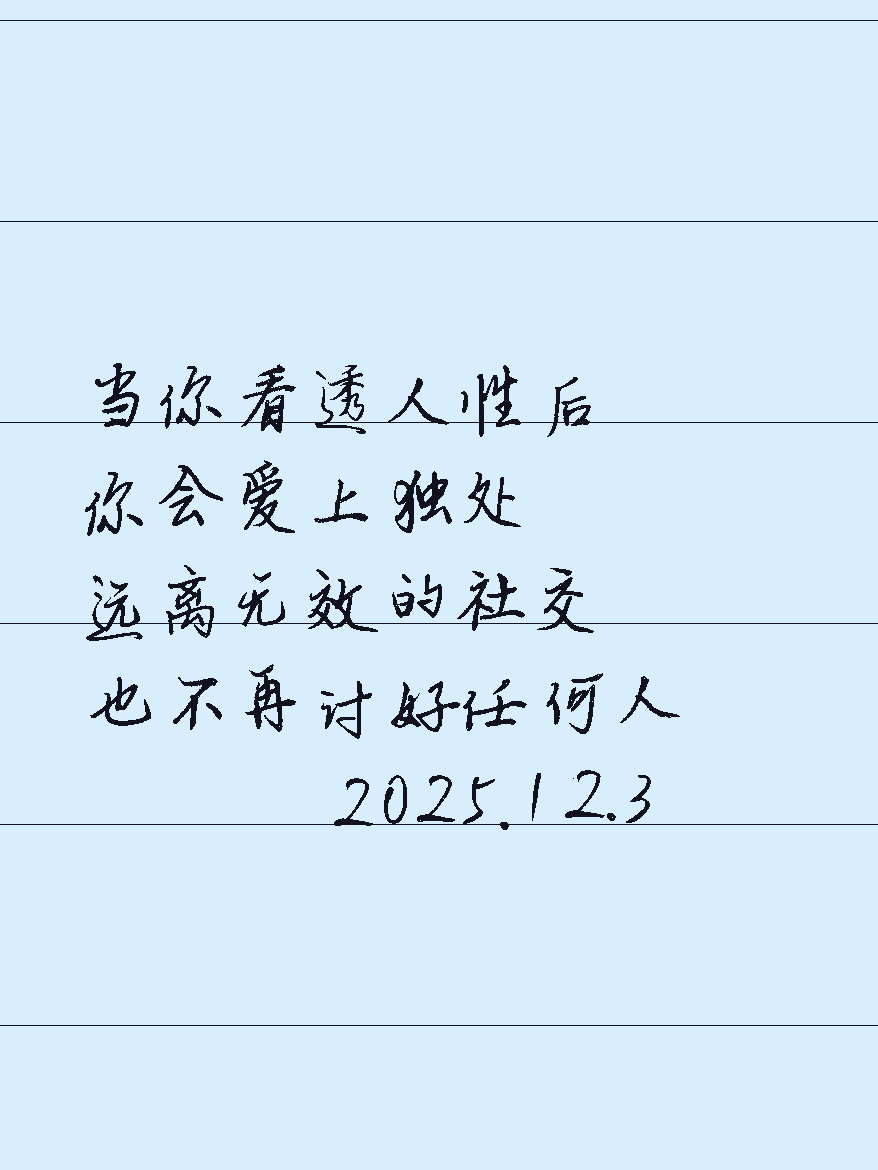 当你把人性看透 你就会喜欢独处 不愿意掺和无效社交 更不...