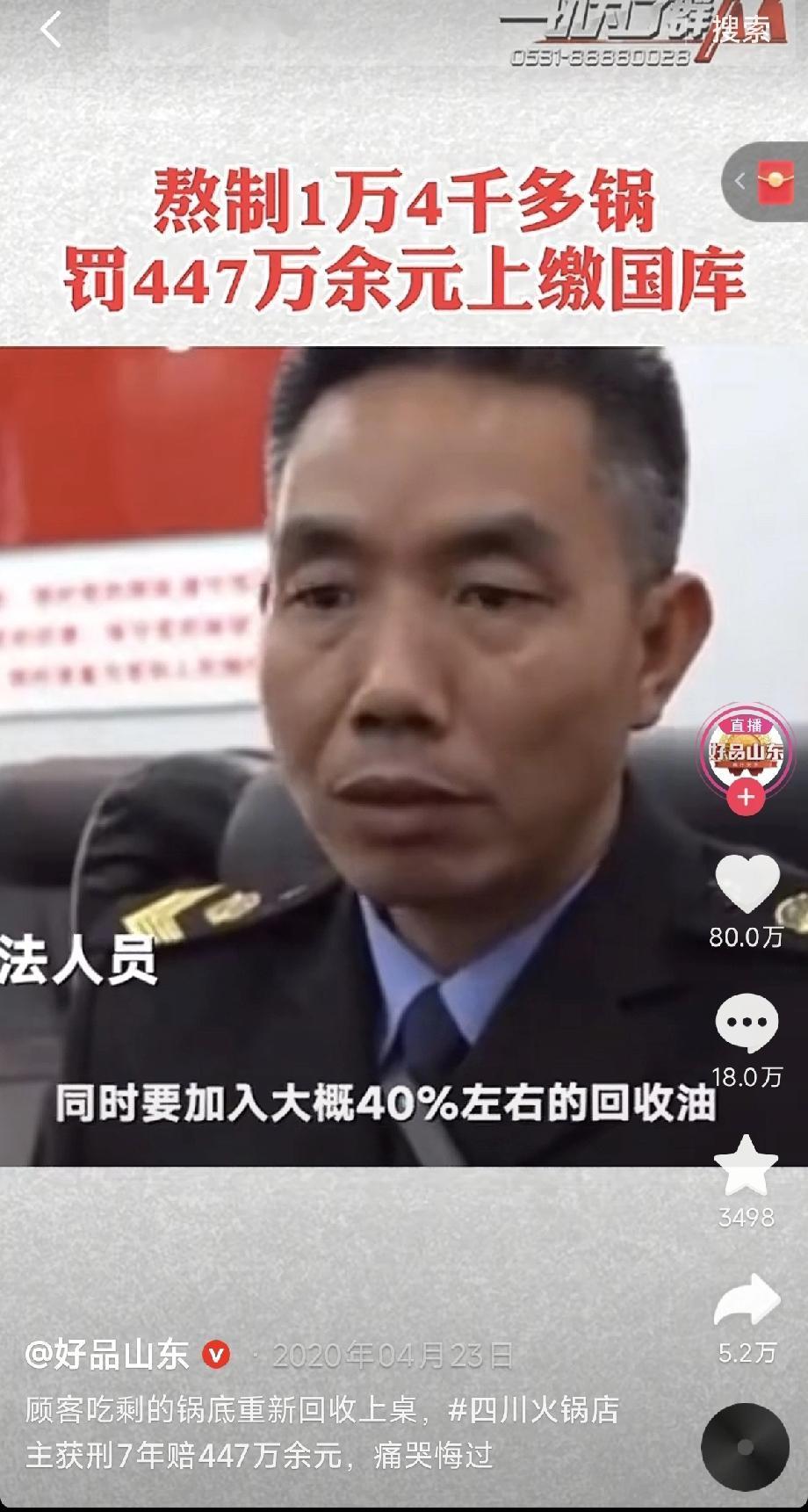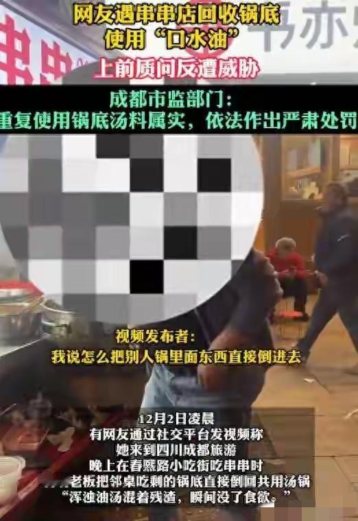 我有一种预感 四川这个串串老板随着官方通报出来后, 接下来可能要面临的可能是很严重的问题! 虽然官方在通报已经给出“依法严肃处罚”但是目前没有具体的处罚措施。 可是我去查了查发现,之前有过这样类似的案件。事件发生于2020年,也是一个火锅店老板,回收了顾客吃剩的锅底。每500公斤里面他加入40%左右的回收油,被当地人称作老油。后续被查处之后,查清楚他熬制了14000多郭,获刑7年赔447万余元上缴国库! 所以这回串串流动摊的老板,有可能也要面临罚款以及刑罚,他还坦言说自己二三十年都是这么做的,这个情节如果真算起来肯定也是很严重的?大家觉得他会判处多少年?会不会罚的倾家荡产?