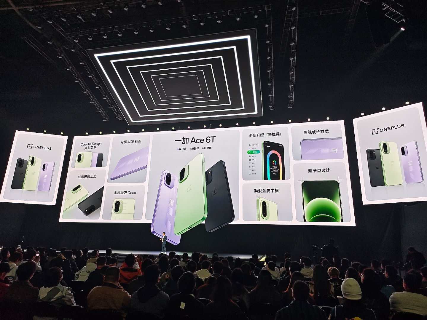 一加Ace6T发布会开始啦!这次一加Ace6T 一共拥有掠影绿、闪速黑、电光紫三款配色,整体延续了家族化设计语言,采用金属Deco设计、金属中框设计、超窄边框,左侧新增快捷键,大家觉得这个外观如何一加Ace6T新品发布你用过165Hz手机打游戏吗
