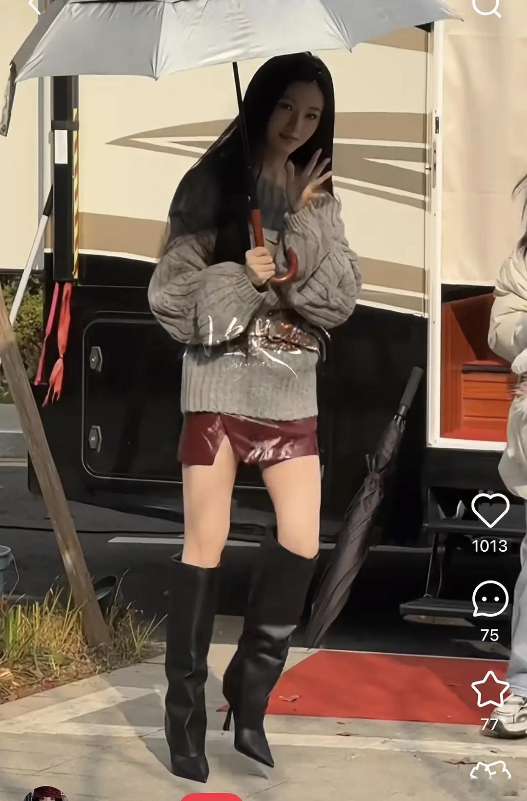 吴艳妮在成都穿着短裤大腿看起来很粗壮,表情自信又张扬
