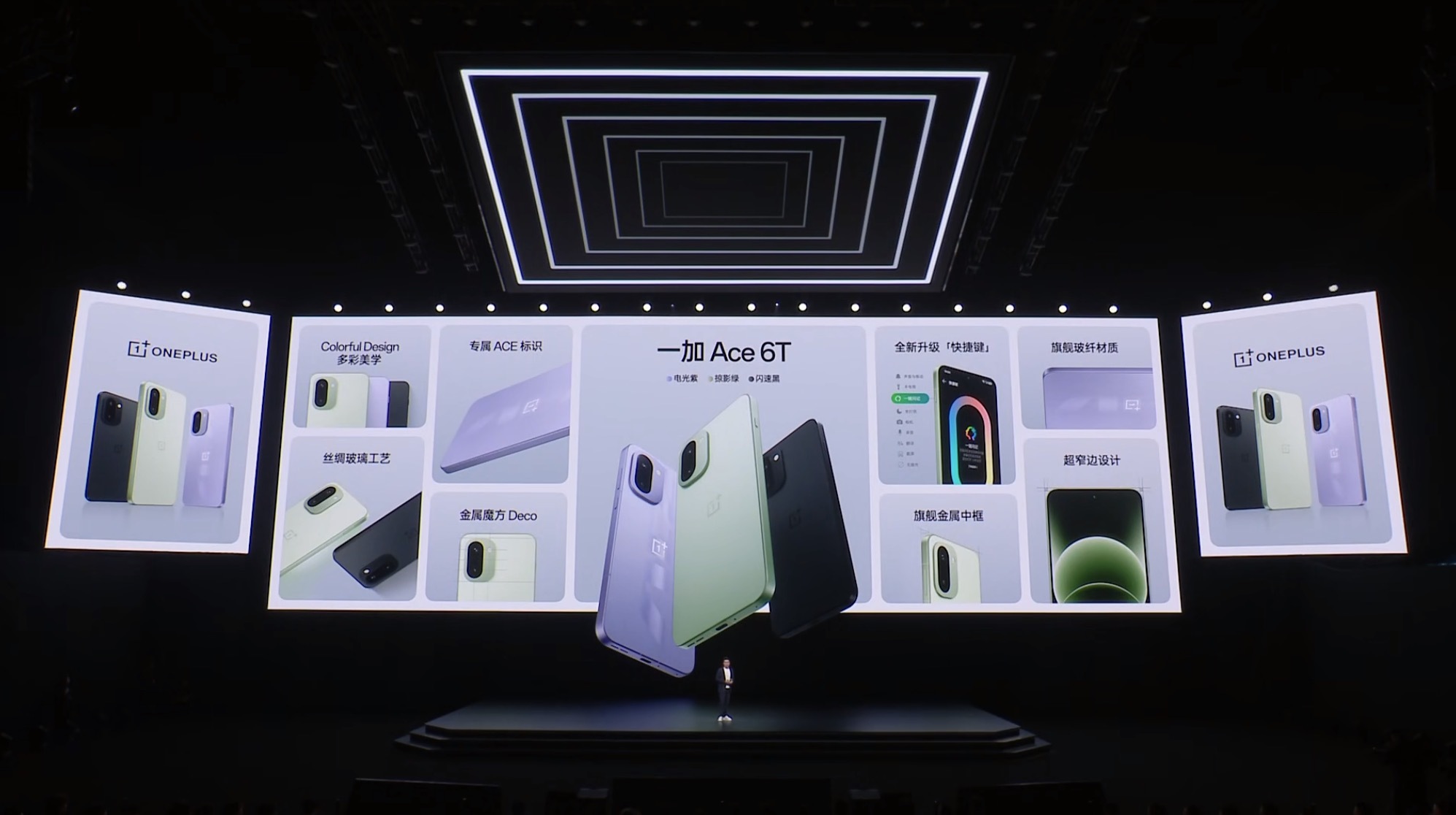 一加 Ace6T设计部分,三个配色,金属Deco和金属中框,紫色还用了玻纤材质,也有快捷键。设计方面很一加,延续了最新旗舰设计语言,大家喜欢吗?