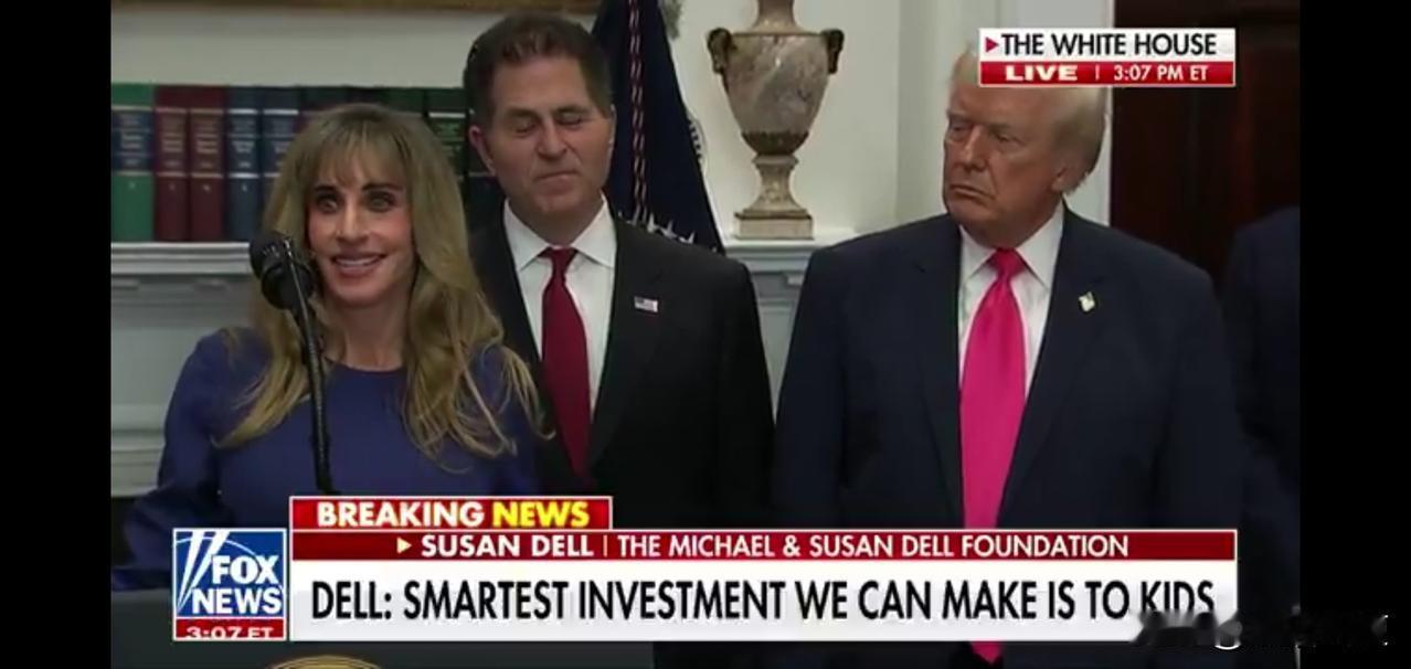 戴尔电脑创始人迈克戴尔,在白宫高调宣布捐62.5亿给美国儿童,美国儿童2500万,每人能获得250美元,目的是为美国孩子们打下【坚实】的财务基础。 可是陪他一同出席捐赠仪式的夫人苏珊戴尔,却引发了热议。没人在乎60多个亿,每个人都在问这个人到底还是不是本人,亦或是实际上里面装了台戴尔电脑。