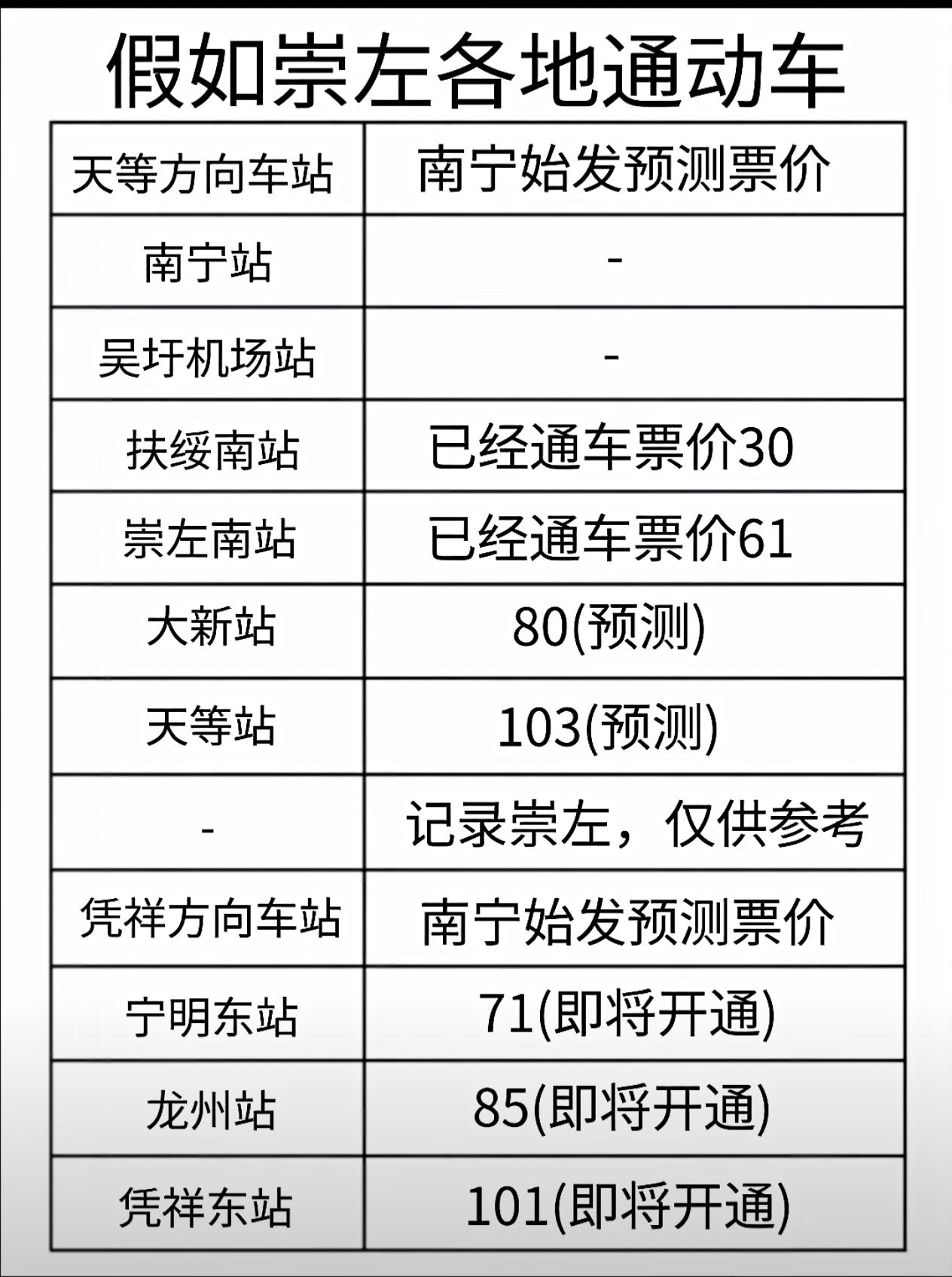 好期待! 再过2日, 南凭高铁全线通车,届时南宁至凭祥,1小时15分即可到达,南宁去往中越边境口岸更加方便快捷。 据悉,南凭高铁崇凭段起自崇左南站,经崇左市,终至凭祥市凭祥东站,线路全长81公里,设计时速250公里,与现在运营的南宁至崇左时速是一样的。 你们票价多少呢? 目前普速铁路南宁至凭祥,车程4个多小时。届时能缩短2个多小时。方便许多。 网友预测,看看这图片符不符合了。你认为呢?广西凭祥火车站 南宁至凭祥高铁