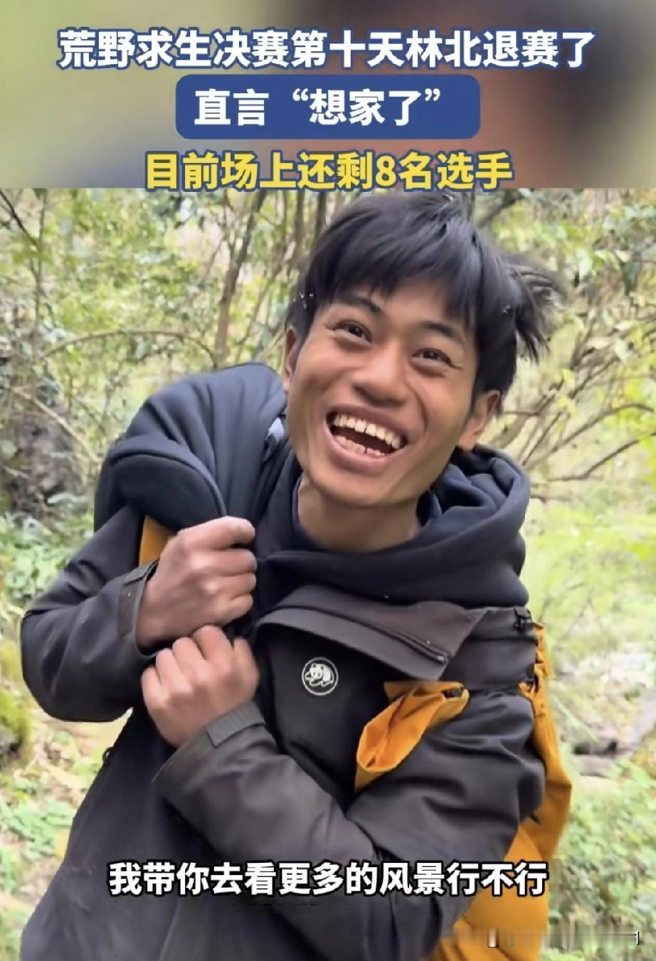 林北和文车车“第10天一同退赛了” 林北退赛的理由很简单,就是想家了。 文车车退赛则是不想把身体熬垮,毕竟还有一大家子人等着他养活! 要是我现在退出,此时应该是流量最大化的时间点,时间一长关注度没准会下降,现在退出搞直播带货才是明智之举。要是熬上几个月还没拿到第一,那可就是名利双失了。你看冷美人直播时都有四五万人在线。最关键的是,选手们休整五天后尝到了直播的甜头,最终大概率是苗王和建哥角逐冠军。 网友猜测,有没有这样一种可能,林北退赛是节目组为了消除刀疤哥退赛引发的负面舆论。毕竟刀疤哥退赛疑点重重,给林北足够的好处,安排他退赛是消除舆论的最佳选择。对林北来说,这个节点退赛也有利于他日后在网络领域的发展,这是双赢的安排,只是苦了刀疤哥! 对此,大家怎么看?