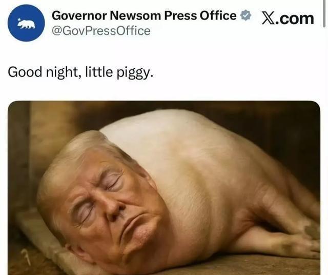 加州州长纽森在社交平台X上发了张图,把特朗普的照片P成了一头猪。这种赤裸裸的人身攻击,放在咱们普通人身上肯定要闹上法庭,但在美国政坛却成了家常便饭。其实这种操作在美国早有传统。 手指在键盘上敲下发送键时,纽森团队的实习生正盯着屏幕——AI算法刚把特朗普的发际线拉成卷曲的猪鬃,圆滚滚的鼻子上还沾着虚拟的麦当劳番茄酱。 这条配文“安静,小猪”的帖子,像滴进热油的水珠,在X平台的推荐流里炸开了锅。 评论区前五十条里,三十七个带着愤怒表情,十二个在哈哈哈,还有一个ID较真地问:“为什么猪要拿金色蓝图?是暗指特朗普的高尔夫球场吗?” 没人关心蓝图。大家盯着那张1992年特朗普与爱泼斯坦的合影,被P上“两头小猪”的字样后,正顺着算法的藤蔓爬向全球用户的手机屏幕。 这一切的起点,是三天前空军一号舷梯上的一句话。记者卢西追问爱泼斯坦档案时,特朗普皱着眉吐出“安静,小猪”,话音未落,纽森的新闻办公室电脑已经亮起了PS软件的图标。 但纽森不是第一个扔泥巴的人。 翻开特朗普的“攻击词典”,喜剧演员罗西·奥唐纳的“肥猪”标签还没褪色,2016年被他叫做“猪小姐”的选美冠军艾丽西亚·马查多,至今记得电视上那张嘲讽的脸——“像被扒光了扔在菜市场”,她后来在采访里说。 如今这张脸以猪的模样回来,CNN主播杰克·塔珀骂“恶心”,前福克斯主播格雷琴·卡尔森说“侮辱性”,国际妇女媒体基金会翻出旧账:2015年他对梅根·凯利说“血从她哪里流出”时,不也这么理直气壮? 但为什么这种放在日常生活里会引发诉讼的行为,到了美国政坛就成了无人能管的“常规操作”? 答案藏在18世纪的羊皮纸里。美国宪法第一修正案保护言论自由的条款,给政客们设了一道几乎爬不过的门槛——想告对方诽谤,得证明“实际恶意”,也就是对方明知内容虚假还故意散布。 对总统和州长这种公众人物来说,这几乎是道无解的题。纽森在法庭上只需耸耸肩说“开个玩笑”,主观意图怎么证明?就像前一年那位指控对手“勾结中国”的参议员,哪怕拿不出半点证据,对手也只能干瞪眼——谁让你是公众人物呢? 法律本是为了防止政府压制言论,现在倒成了政治泼脏水的保护伞。特朗普过去骂过的人能从白宫排到华尔街,如今被人P成猪头,除了发推回骂“纽森是加州的耻辱”,连律师函都懒得发。 更讽刺的是,这种把戏早就不是新鲜事了。 19世纪中叶的美国报纸上,政客互相污蔑的文字比广告还多。马克·吐温当年被对手贴满“盗尸犯”的标签,气得差点砸了报社的印刷机——和今天特朗普的脸变成猪头,本质上没什么不同。 只是那时靠铅字,现在靠AI;那时贴在街头巷尾,现在传遍全球网络。 纽森显然吃透了这套传统。11月21日,他又把白宫新闻秘书卡罗琳·莱维特的辩护视频P成《饥饿游戏》里的角色,配文“欢迎来到特朗普的现实秀”;22日,针对白宫“工作到深夜”的宣传,他直接甩出特朗普趴在桌上的照片,猪蹄造型的手还握着钢笔。 感恩节那天更绝:“祝所有人节日快乐——除了那只煽动1月6日事件的火鸡。”配图里,火鸡的头换成了特朗普的脸。 有评论员看不下去,在专栏里写:“与其争论加州的税收政策,不如P个猪头图;与其讨论医保改革,不如嘲讽对方的新闻秘书——这哪是政治辩论,分明是小学生吵架。” 可选民就吃这套。算法偏爱情绪激烈的内容,政策白皮书在猪头图面前,点击量连零头都不够。久而久之,谁还愿意花时间研究法案条款? 特朗普转向攻击加州犯罪率时,纽森立刻回怼“至少我们不把记者叫小猪”;纽森被问财政赤字时,反手就是一张特朗普打高尔夫的P图。 这场闹剧里,没人是赢家,却也没人想停下来。法律管不了,选民爱看,政客乐得省事儿——反正只要把对手的脸P得足够丑,自己的政策行不行,好像也没那么重要了。 当普通人还在为一句侮辱性言论争执对错时,美国政客们早已把P图软件变成新的竞选海报。键盘上的硝烟里,那些本该被讨论的民生议题,正在角落里悄悄积灰