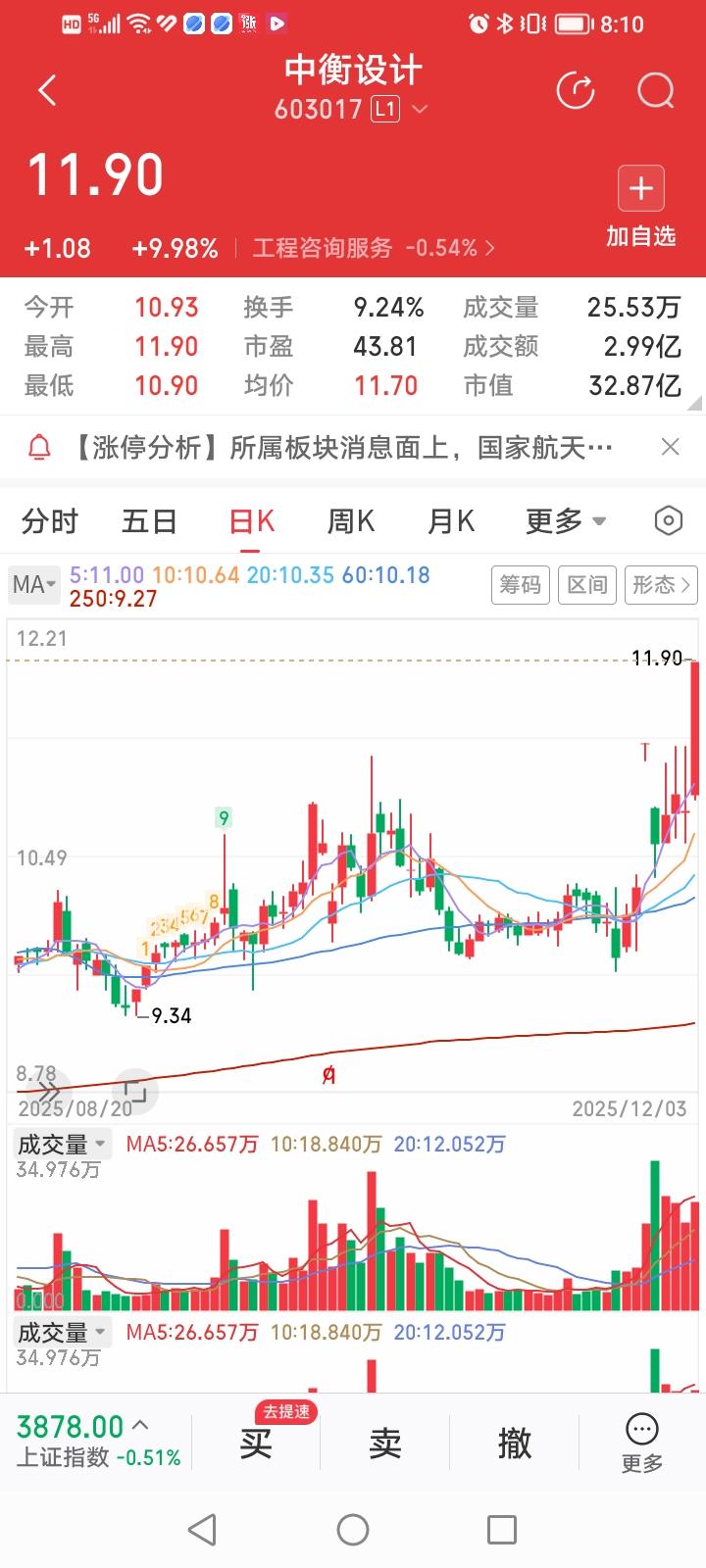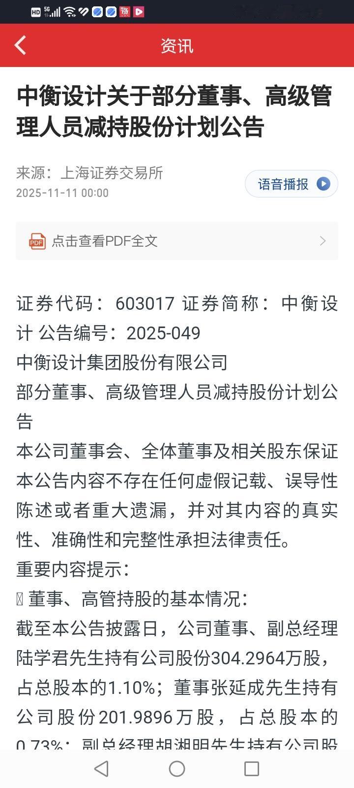 什么情况?中衡设计11月11日刚发布股东减持预披露计划,按照相关规定,发布减持预披露计划十五个交易日后,才能正式减持,而今天正好是发布减持预披露计划之后的第十五个交易日,股价居然涨停了,是巧合吗? 太阳底下没有新鲜事。有一种减持叫拉高出货减持,不知道中衡设计是否属于这一种?在大A就有不少机构具有这种神功,不拉高没人跟风炒作,出不了货。 中衡设计基本面并不是很优秀,其动态市盈率高达43.81倍,行业属性也不算太好,但不耽误它拉旗杆涨停。