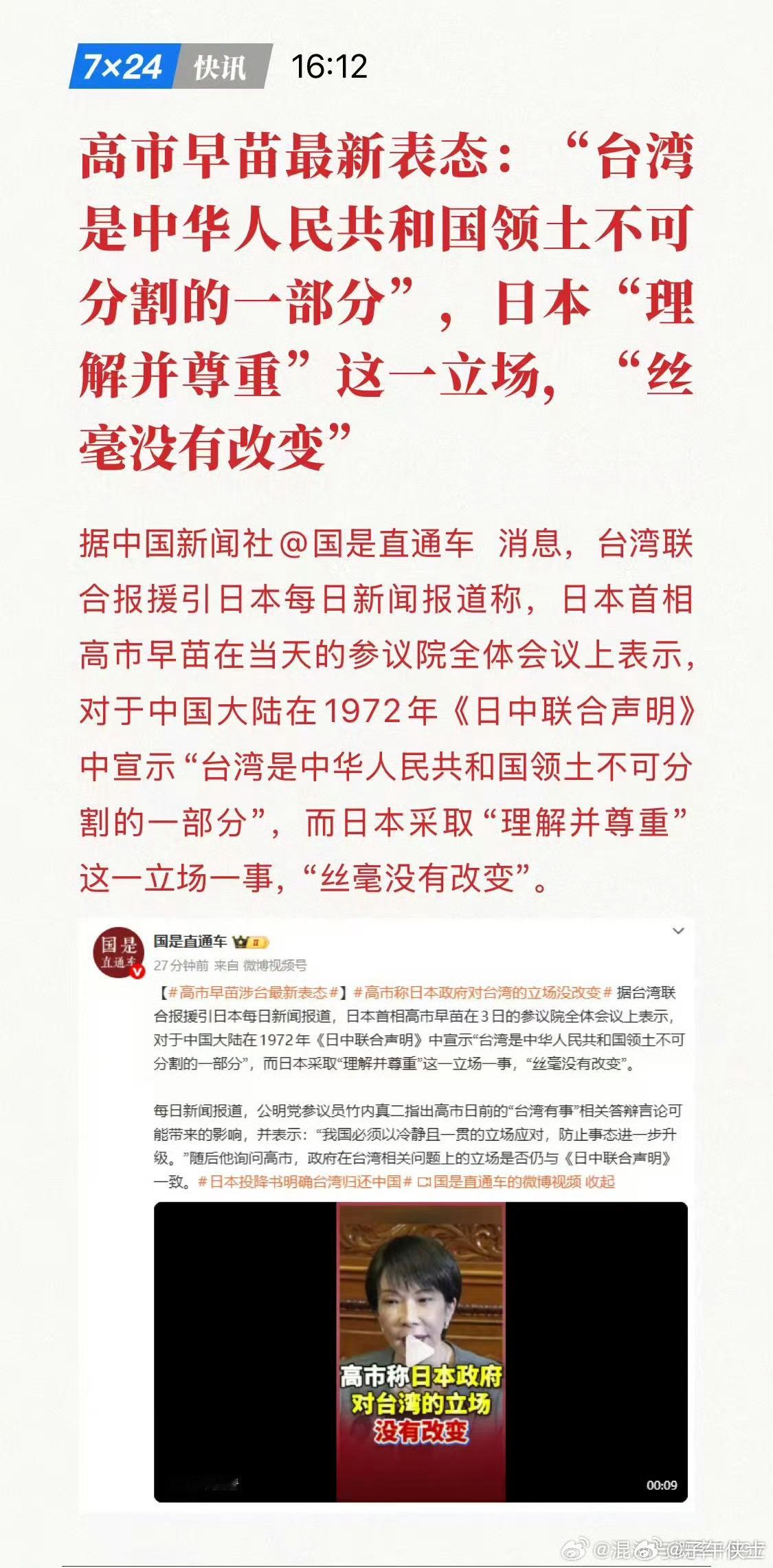 高市早苗涉台最新表态既然台湾是中国不可分割的一部分,那“台湾有事”,就是中国内部的事儿,关你小日本屁事?