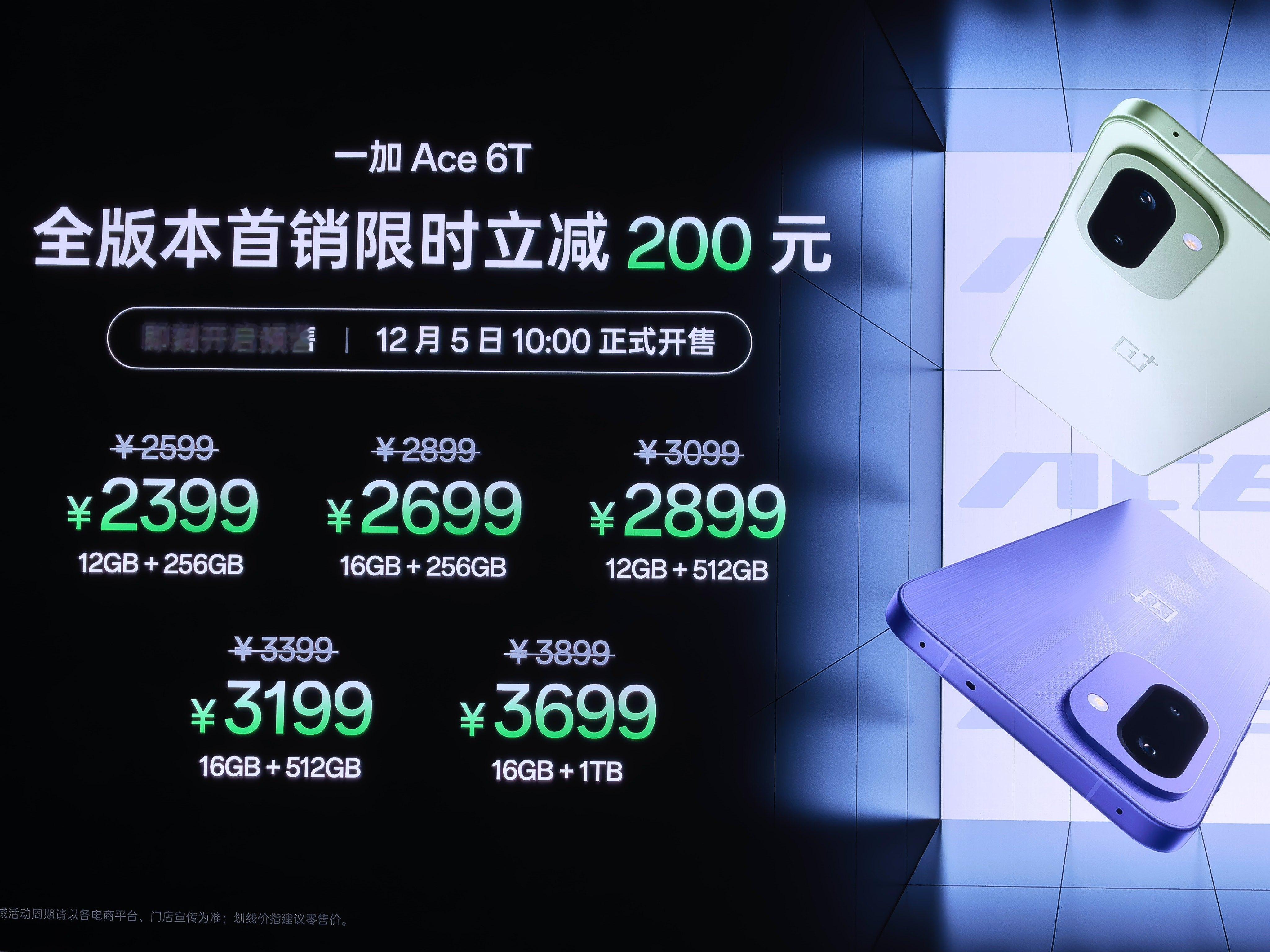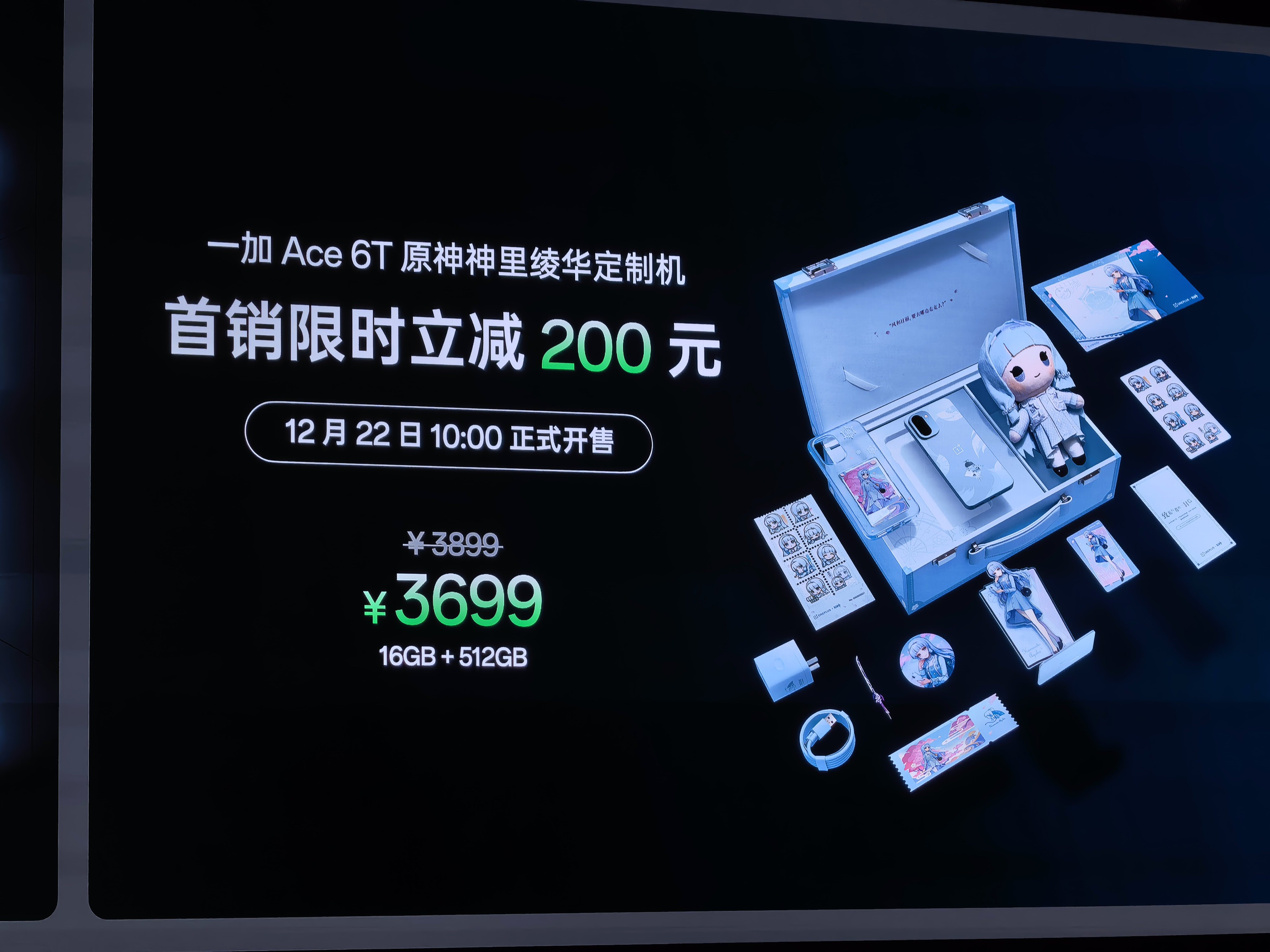 一加Ace6T价格来了2399起,给齐所有!相当猛!原神神里绫华定制版3699元!