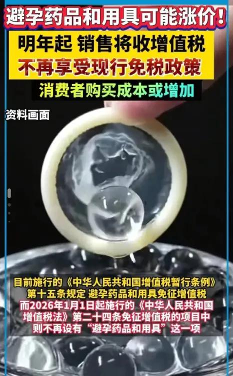连避孕套都要涨价了?明年开始,这玩意儿得多掏1块钱,网友炸锅!这是逼我们生娃还是戒欲? 原来,2026年1月1日起,避孕套,避孕药不再免税,要交13%的税了!政策一变,30年的福利说没就没,理由很直接。现在人口负增长,鼓励生育比控制生育更紧迫。可网友算账笑死人,养孩子要花50万,避孕套涨1块能逼人生娃?不如发500万补贴实在!还有人自嘲今年戒了烟,明年戒欲望,直接躺平! 但真相是,涨价幅度真不大。一盒套最多贵2元,一年也就多几十块。年轻人根本不在意,反而调侃不如养猫,性价比碾压谈恋爱!其实政策背后是税制规范,但催生信号太明显。关键问题来了提!高生育率,靠涨价避孕套真有用?还不如降低房价,教育成本,让年轻人敢生想生。 说到底,1块钱的涨价,改变不了人生大事的抉择。但公共卫生不能忽视。万一有人为省钱不用套,疾病风险谁买单?希望政策配套免费发放渠道,别让健康为代价。