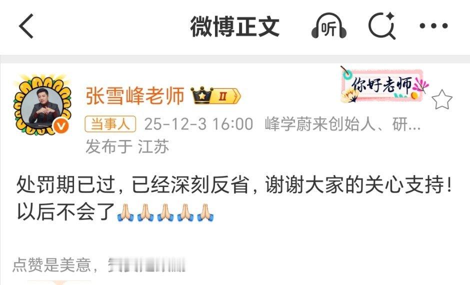 张雪峰称已经深刻反省因在直播中长时间使用污言秽语,张雪峰相关账号被限期禁言、停播。张雪峰作为老师,还是得注意下自己的言行,毕竟有很多学生喜欢他,一定要正能量引导学生。