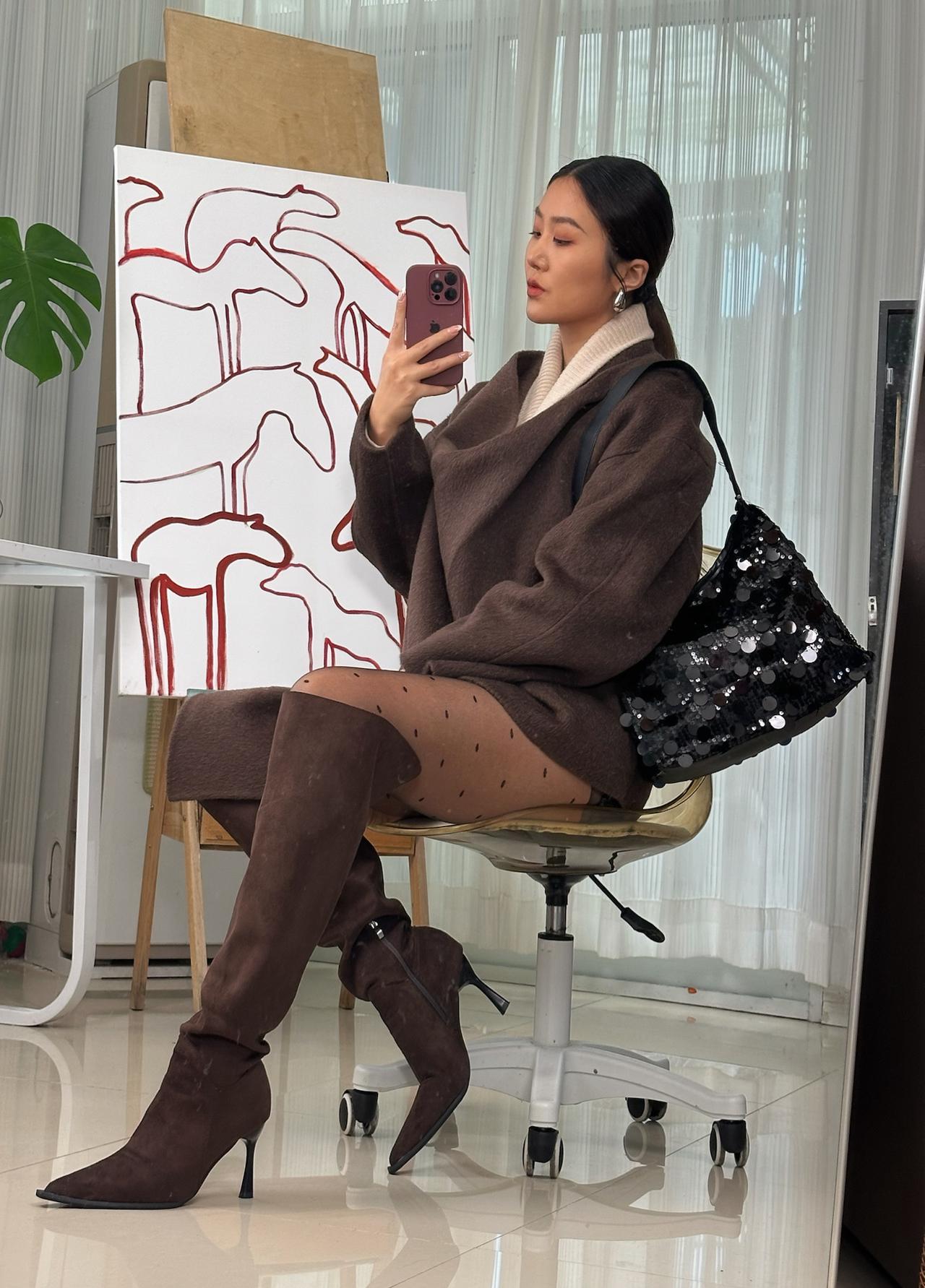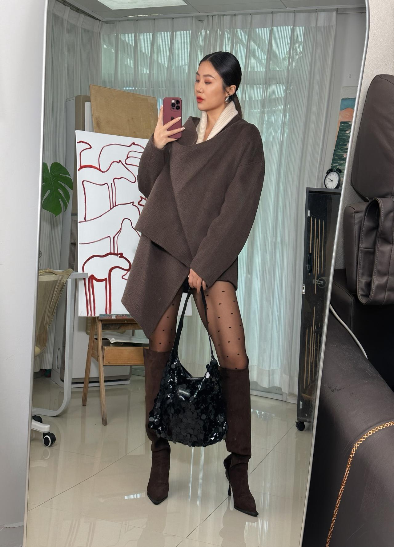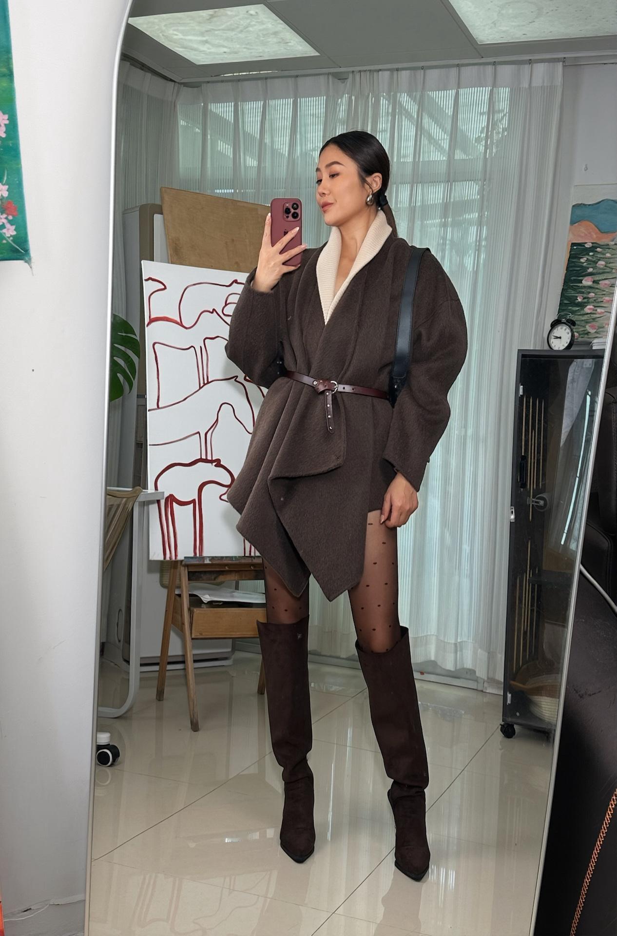 一件好看的大衣就应该是很多种穿法,可以穿出好多种感觉,扣起来、捆腰带、撒开穿都要不一样。只喜欢大衣肯定冷,再套一件翻领毛衣,又好看又保暖。冬天保暖必须是光腿神器,再加一双把腿拔高一米的长靴,你就会得到腿长一米八的效果。哈哈哈秋冬配大衣 黑丝大衣搭配 大衣配什么鞋 女款大衣穿搭 高级感大衣套装 长靴袜子搭配