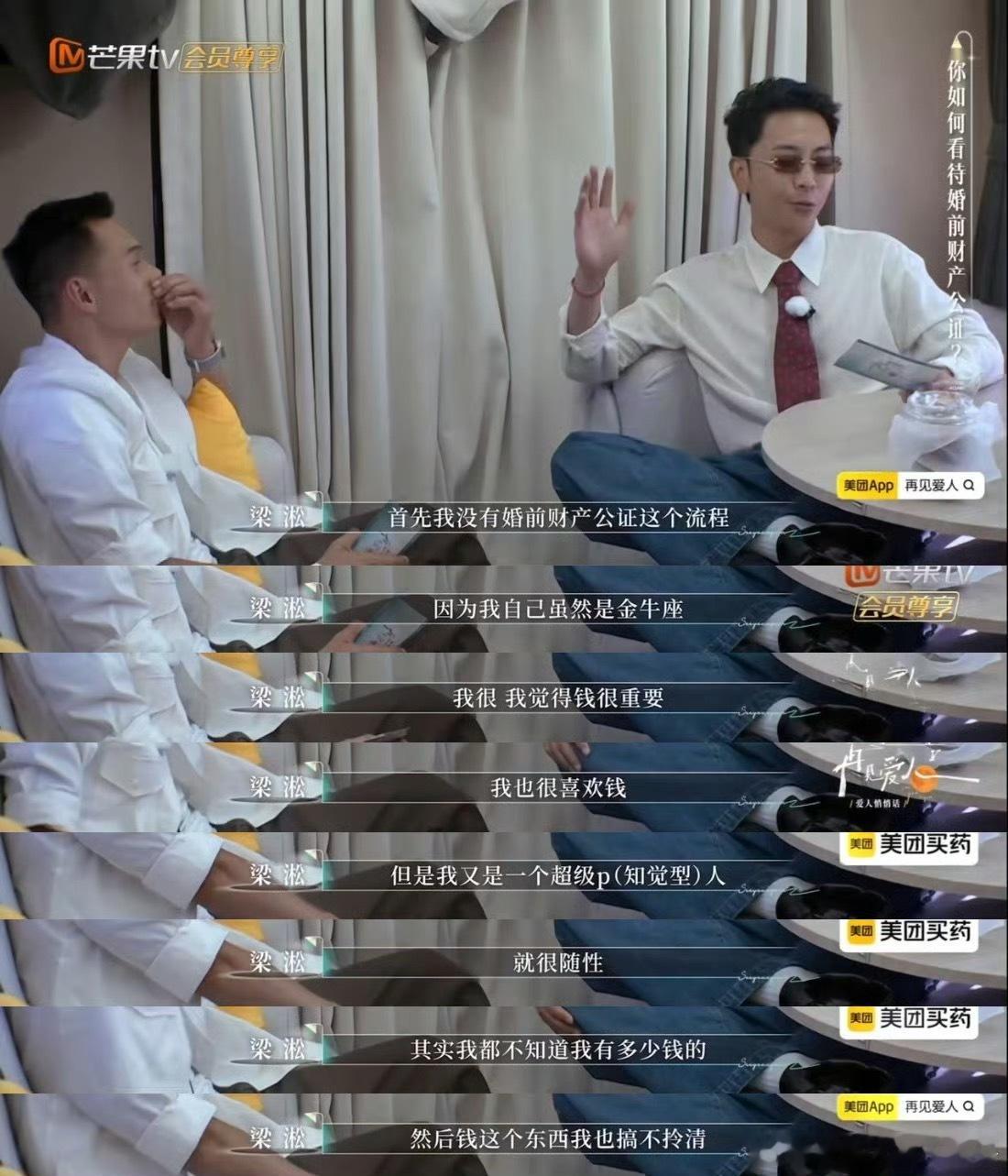 何美延梁淞没做婚前财产公证何美延梁淞在《再见爱人》里聊公证,简直是“亲密关系谈钱