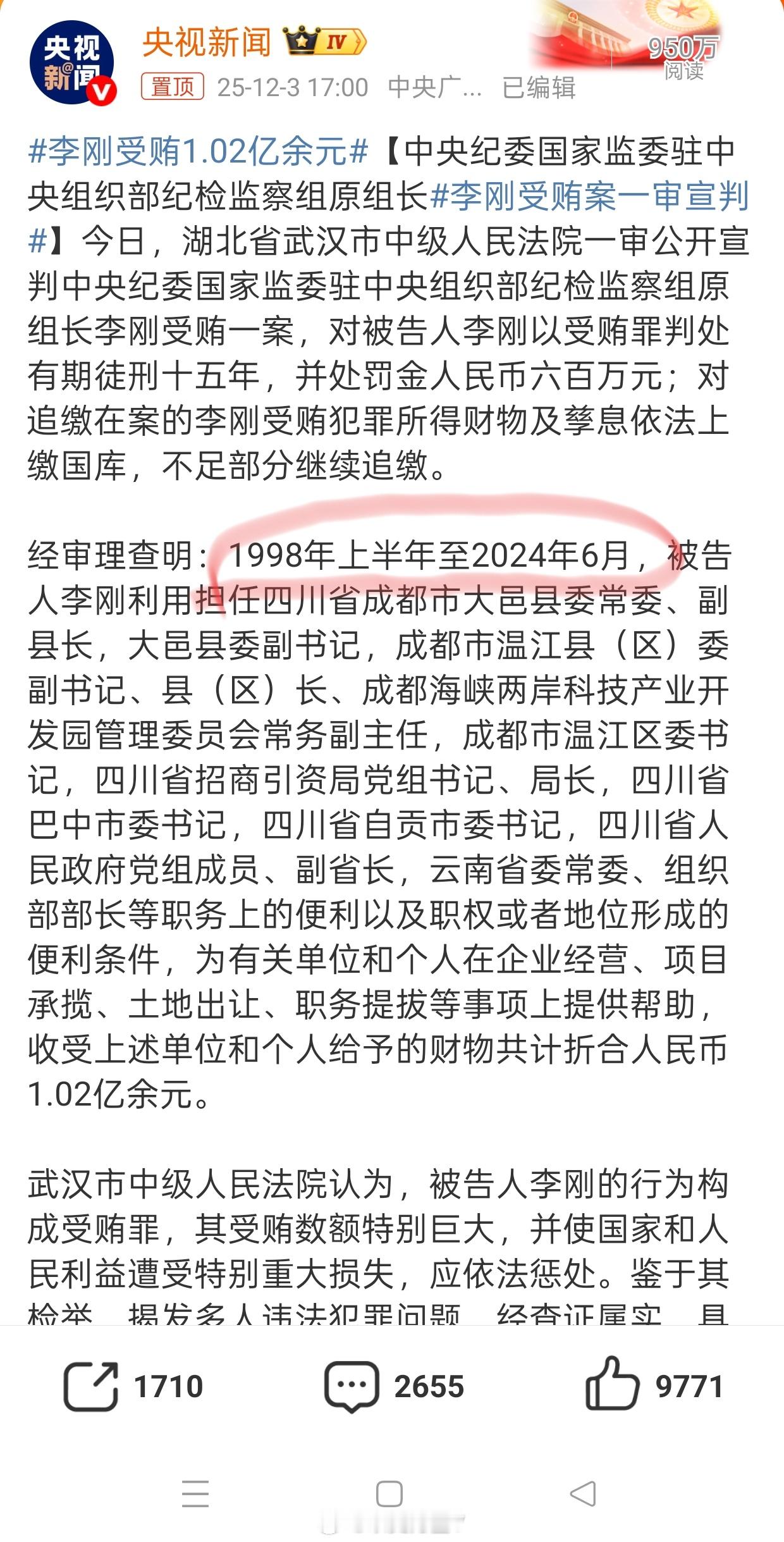 李刚受贿1.02亿余元从1998-2024,真正的倒查三十年!