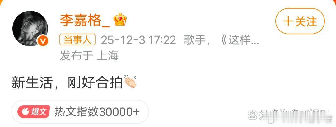 12月4日,李嘉格用小号发文说:“恋综哪有生活美好,出来见人了。”李嘉格继昨